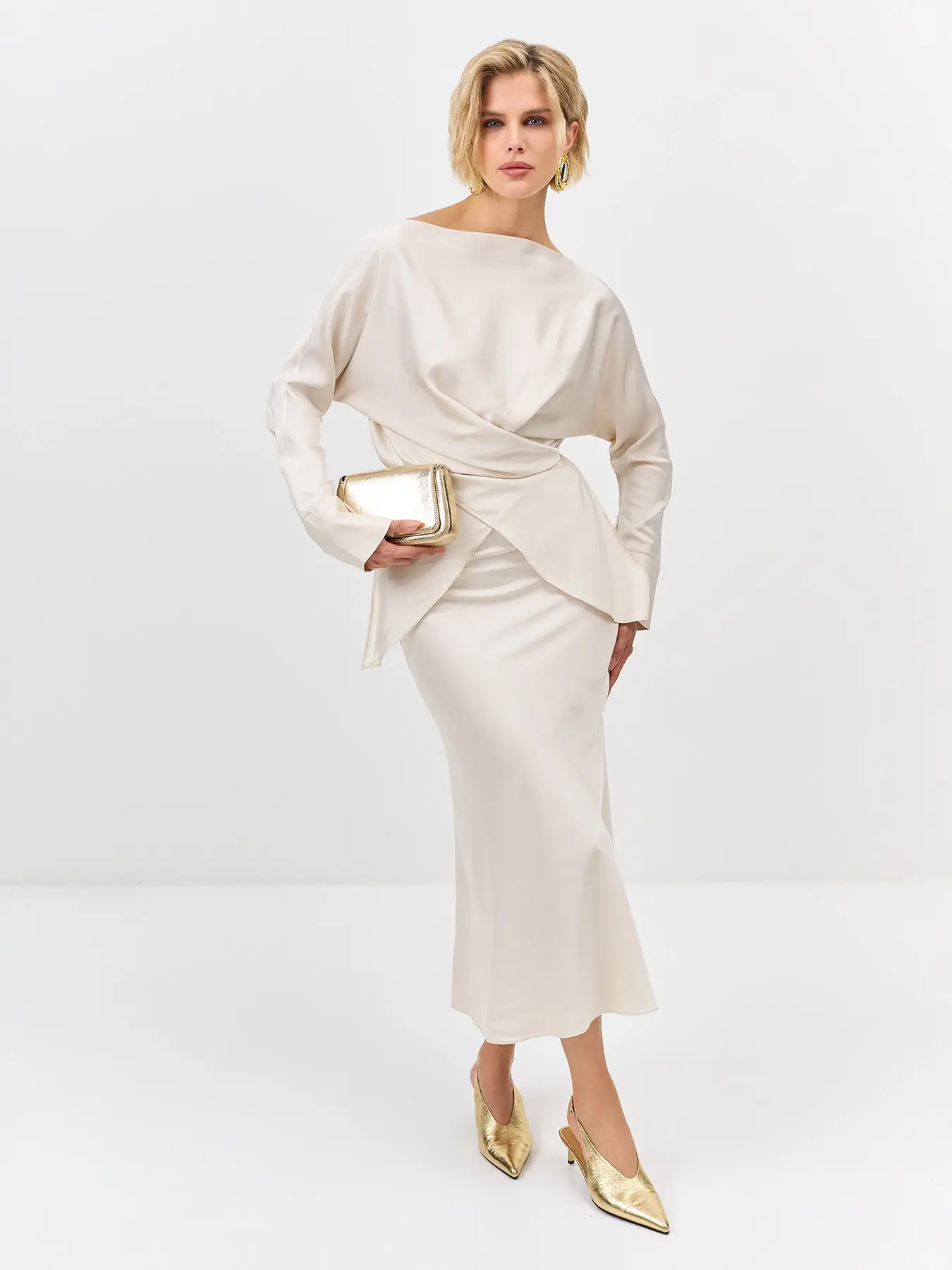 Откройте для себя элегантность немецкой моды бренда Bulmer! Кремовая блуза свободного прямого силуэта с длинными рукавами подарит комфорт и стильные ощущения благодаря свободному крою без застежки – легко надевается и удобно носится. Новинка сезона станет незаменимым элементом вашего гардероба! Создайте свой неповторимый образ уже сегодня!