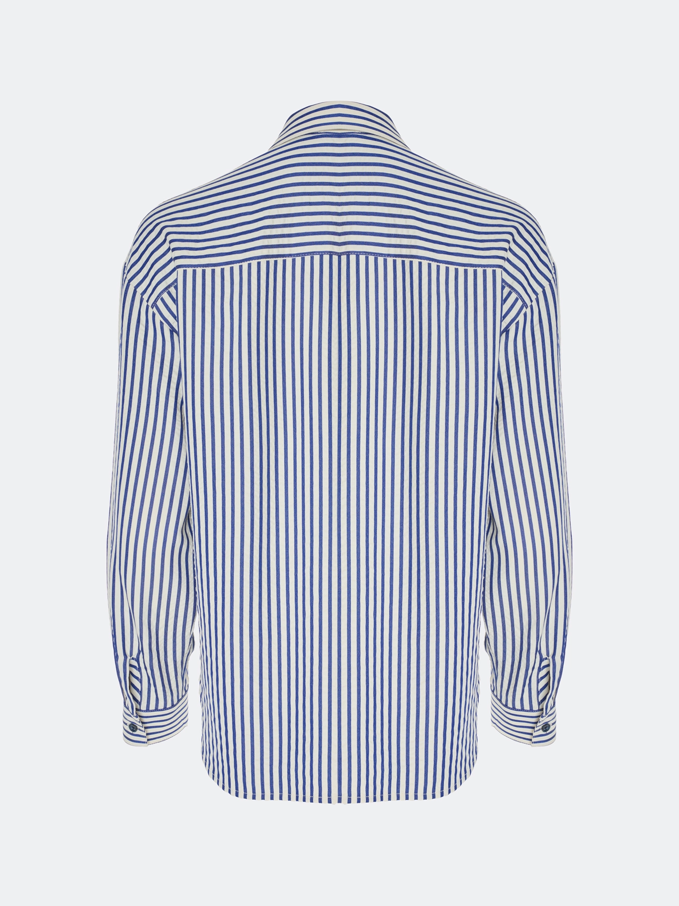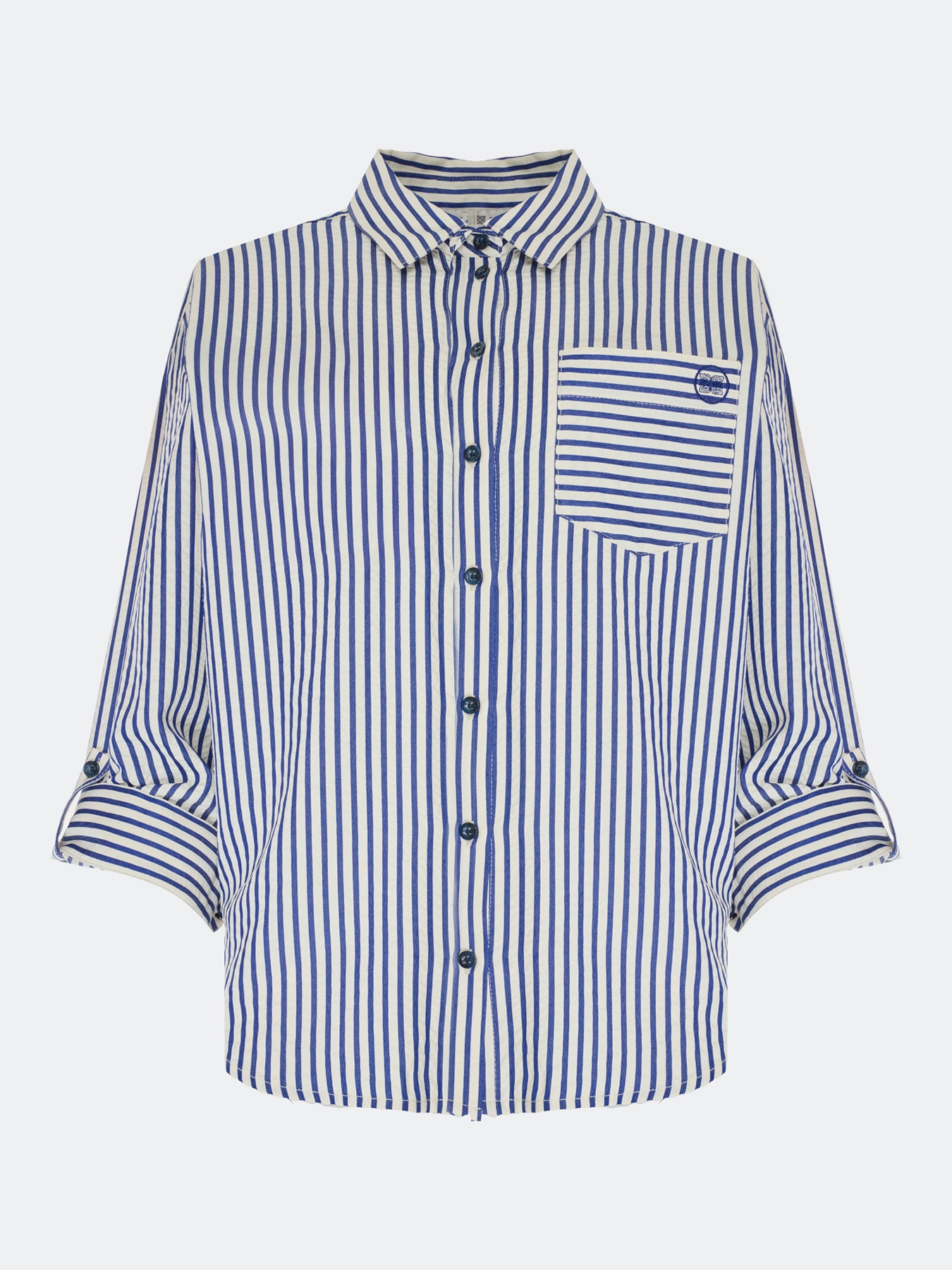 Новинка сезона – стильная блузка от немецкого бренда Bulmer! В элегантных синих полосах, выполнена из высококачественного материала. Закрытая модель на пуговицах подчеркнёт вашу индивидуальность и безупречный вкус. Длина рукава – классический длинный. Прямой силуэт подходит всем формам. Размеры от 36 до 52 EU/RU – найдётся ваш идеальный вариант. Идеально впишется в офисный дресс-код и дополнит повседневные образы.