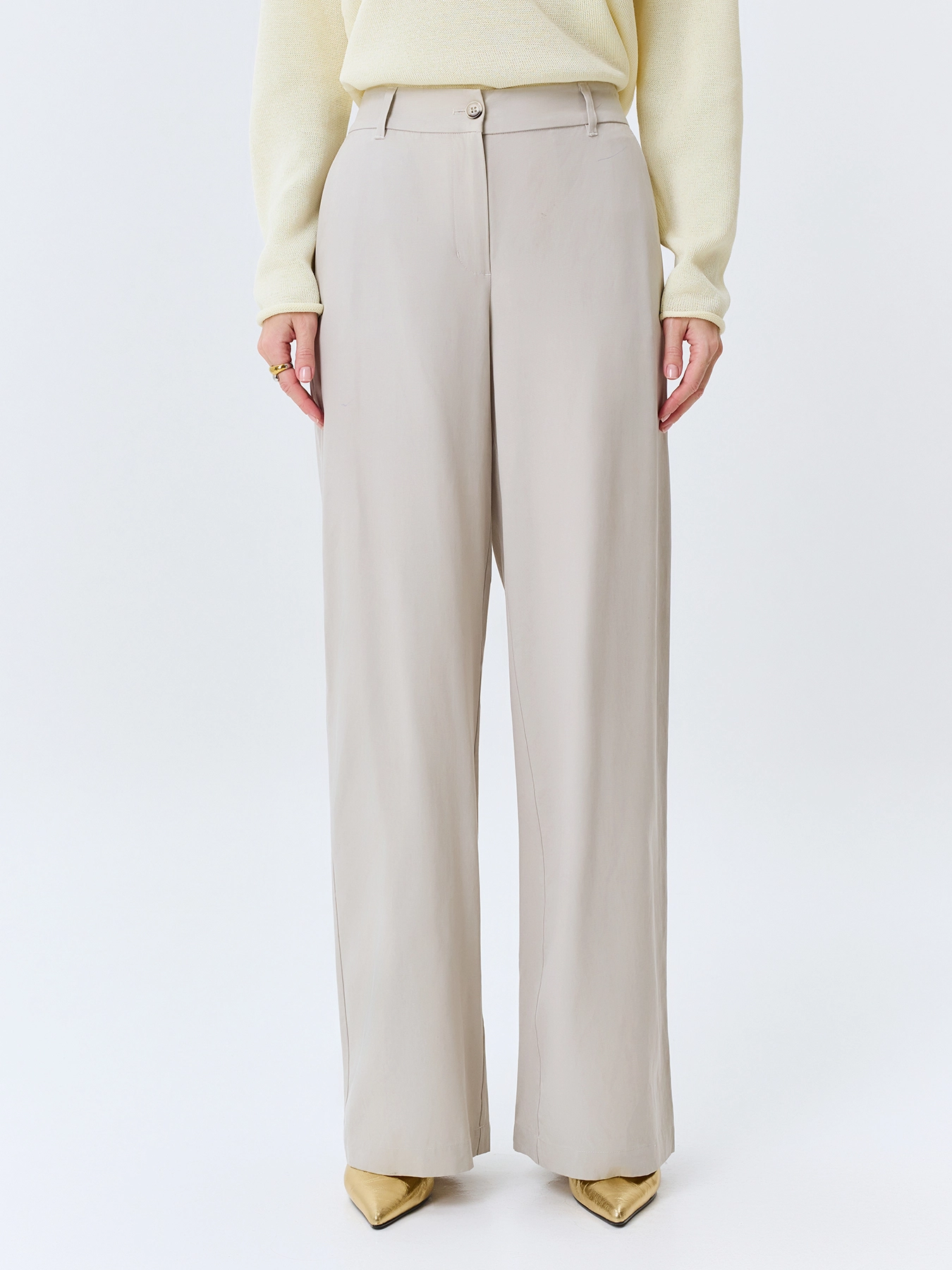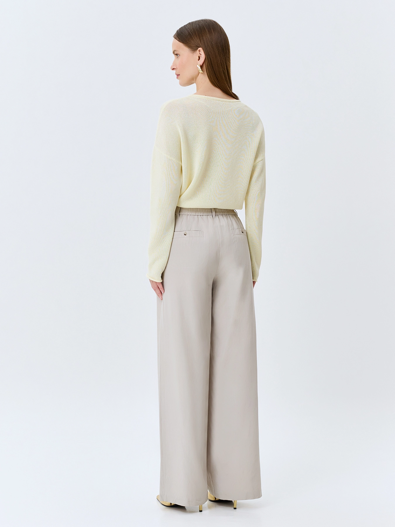 Брюки из тенселя и льна. Свободный силуэт. Застежка на молнию и пуговицу. Резинка по линии талии по спинке. Боковые карманы в швах. Комплект с 4267344.