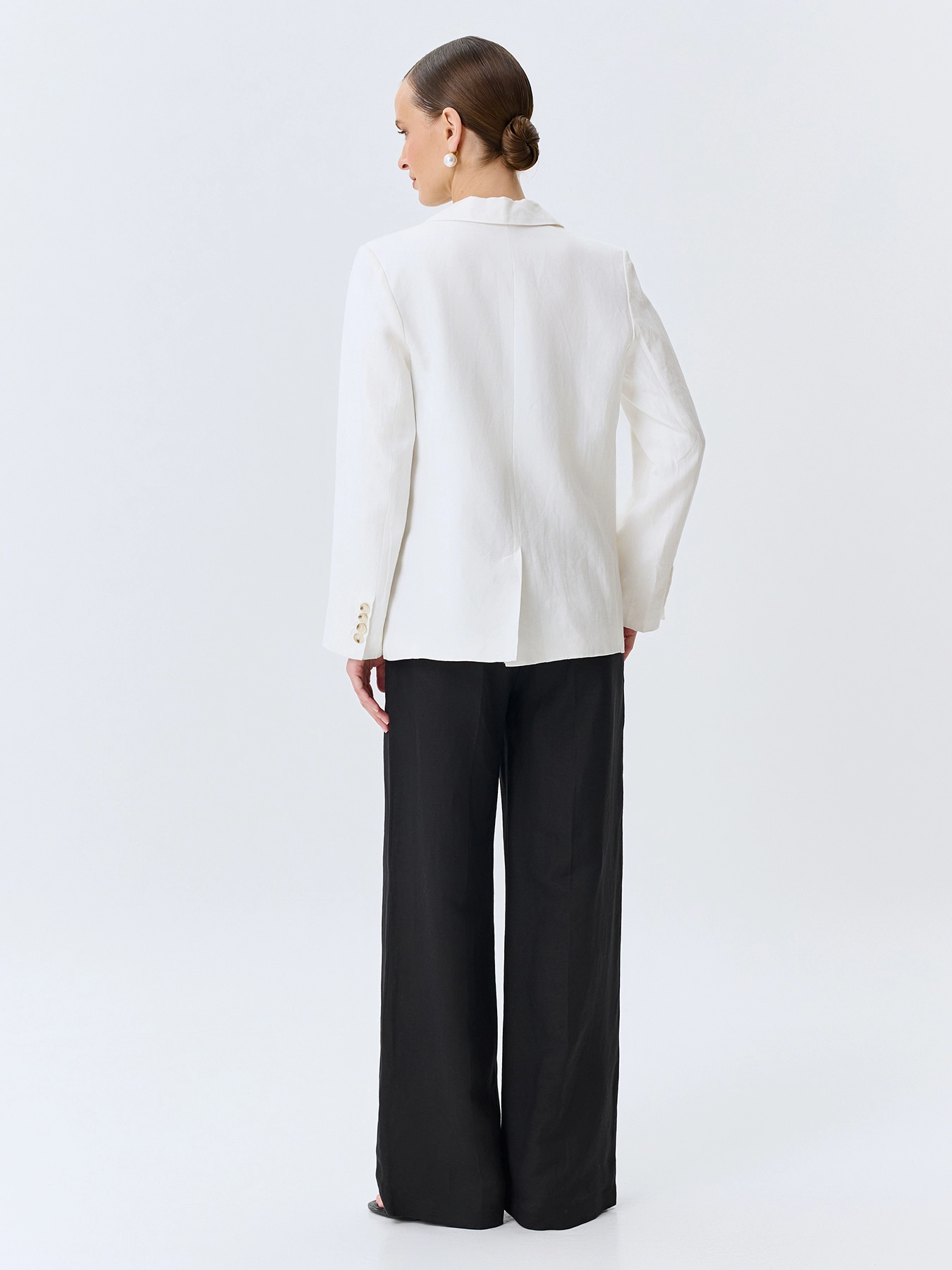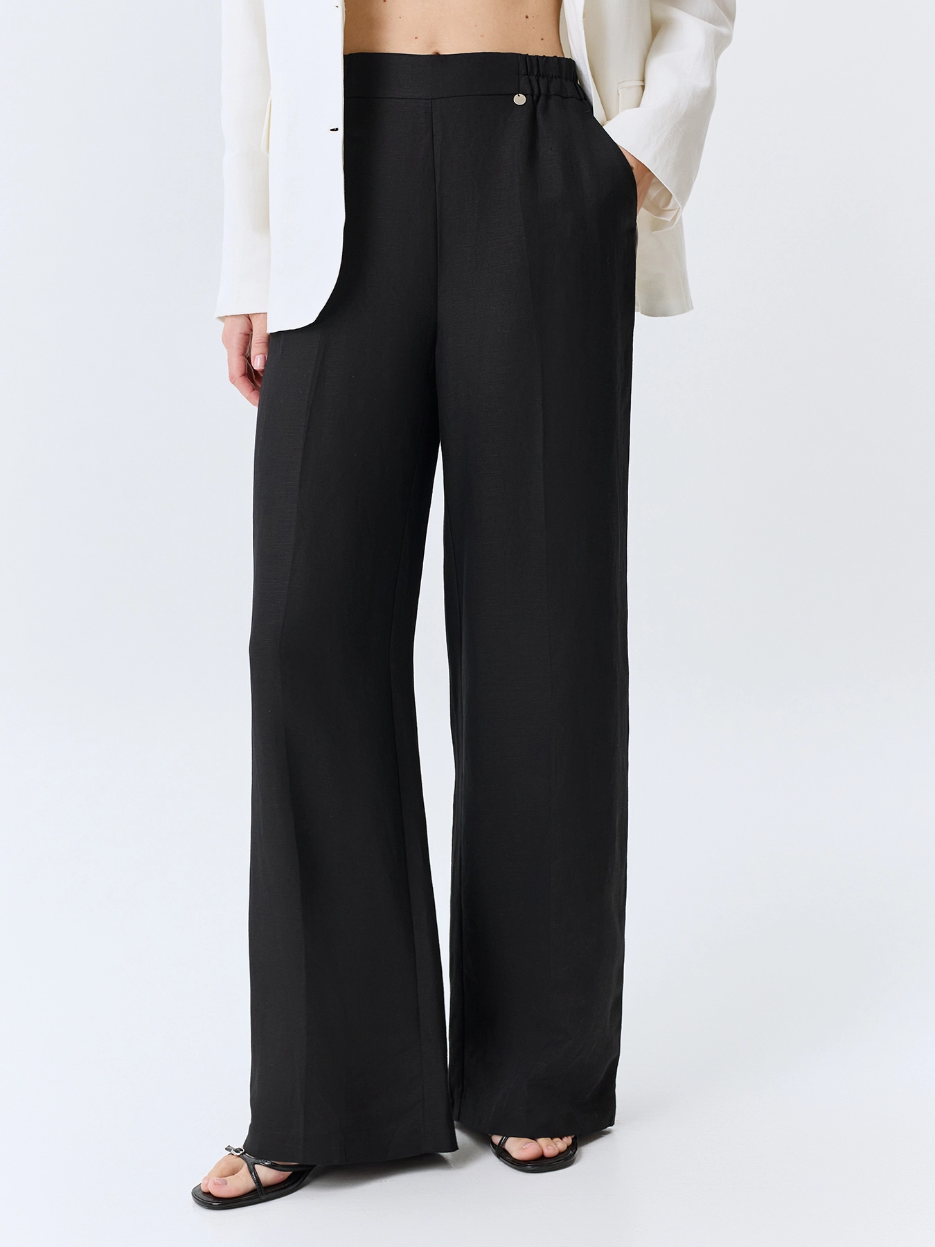 Брюки из смесового льна и вискозы с мягкими стрелками. Прямой силуэт. Резинка по линии талии по спинке. Боковые карманы в швах. Комплект с 4267328.