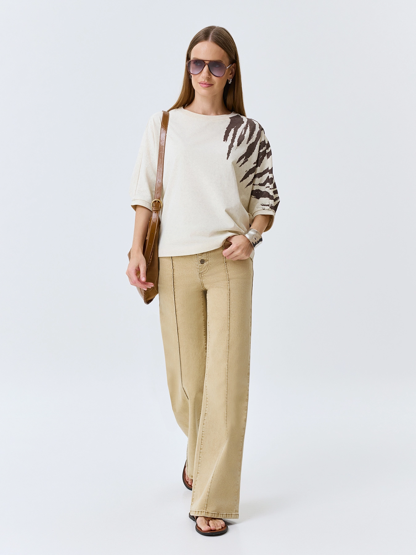 Новый джемпер от немецкого бренда BULMER – стильное решение для вашего гардероба! Принт животного узора придаст образу оригинальности, а легкий фасон сделает его незаменимым летом. Удобные рукава ¾ подходят под любой образ. Прямой силуэт подчеркивает фигуру, не сковывая движений. В ассортименте размеры от 36 до 52 EU/RU, цвет бежевый – универсальный выбор. Подходит женщинам, ценящим комфорт и модный дизайн в одном изделии!