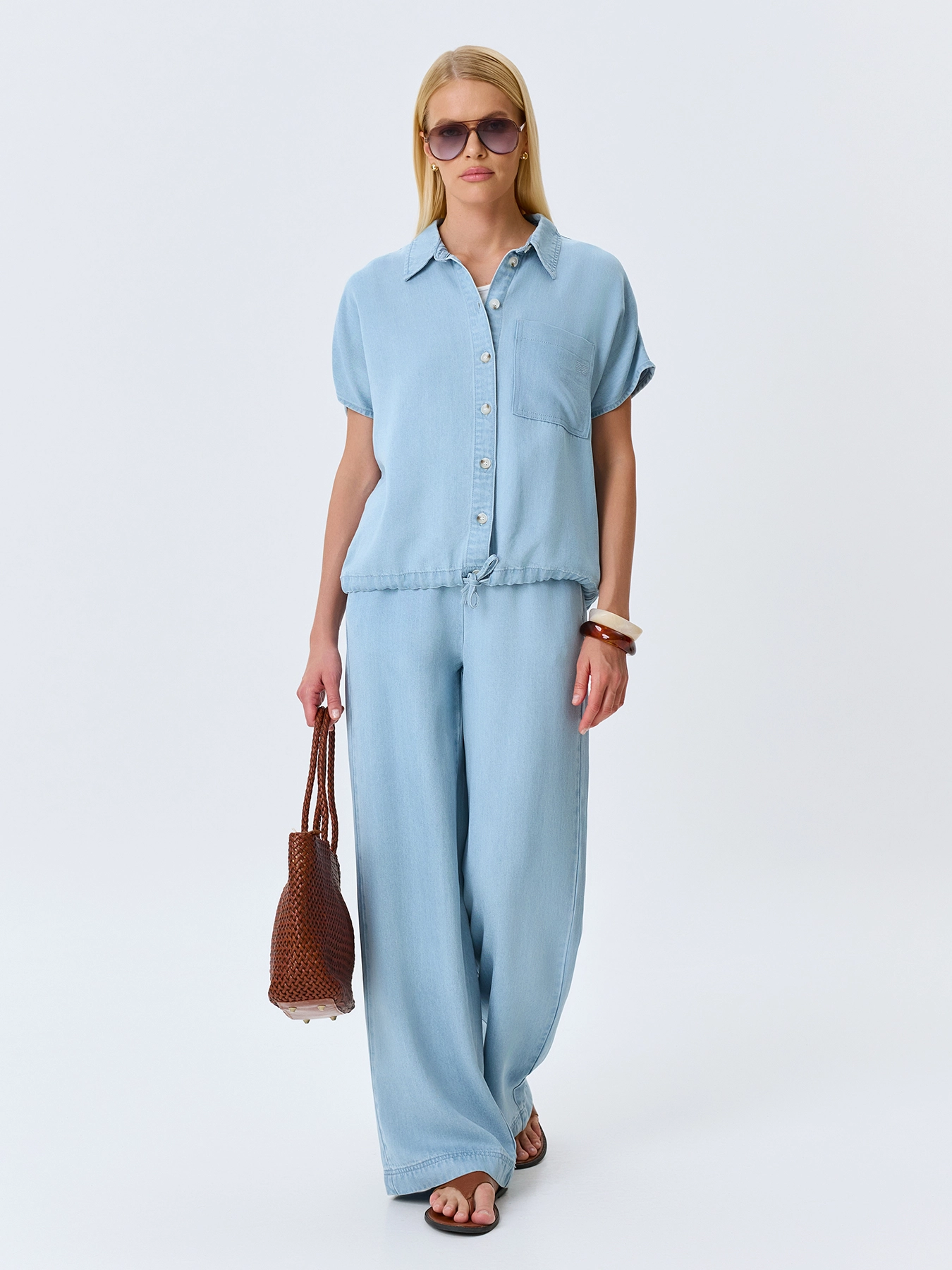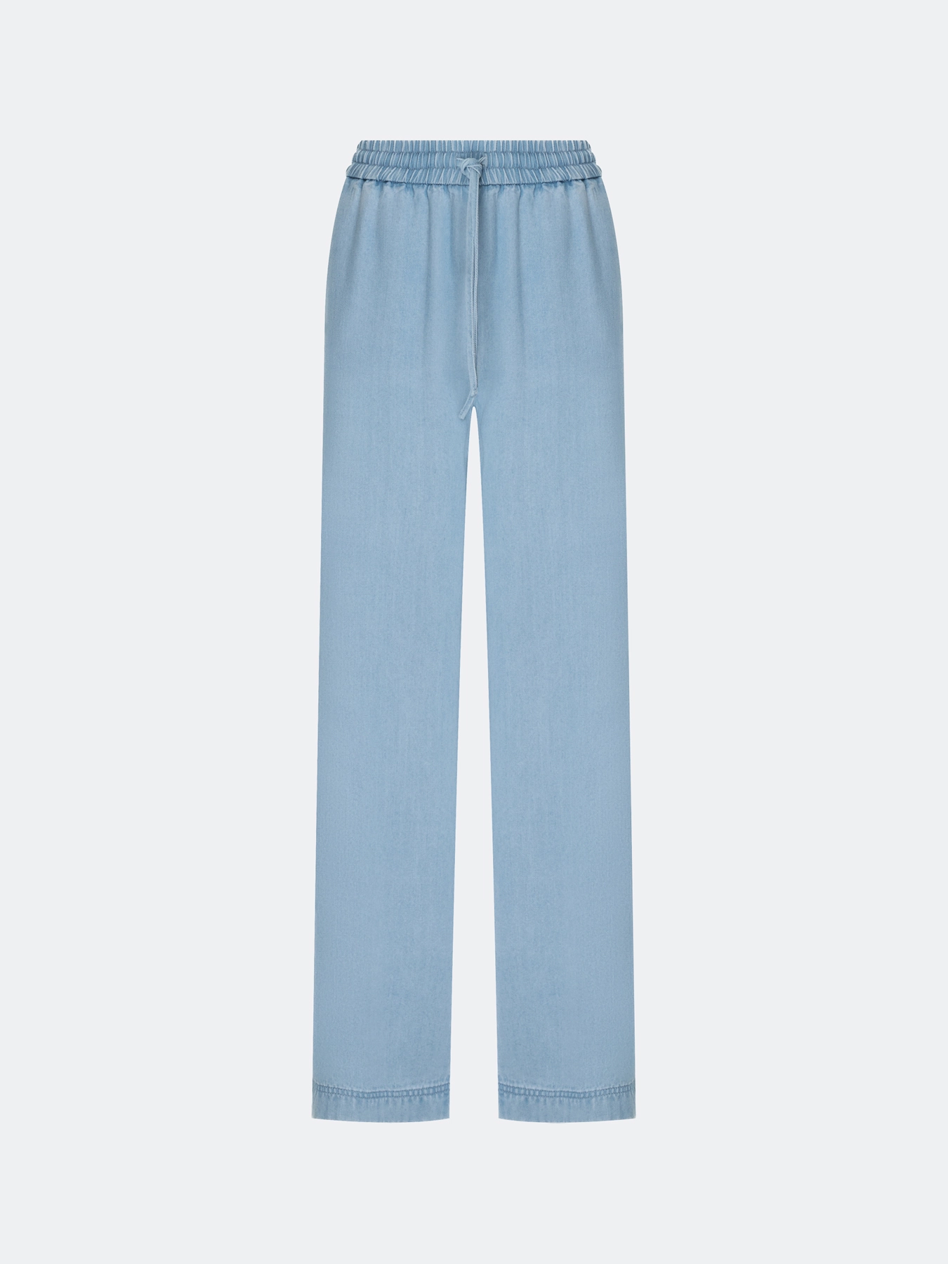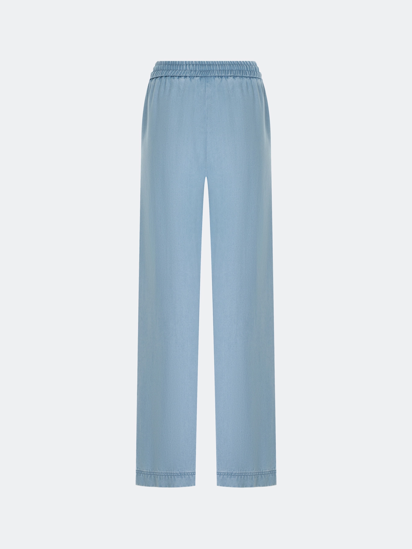 Тонкие джинсы из 100% тенселя. Свободный силуэт. Резинка и кулиса по линии талии. Боковые карманы в швах. Дополнены деликатной варкой. Комплект с 4267615.