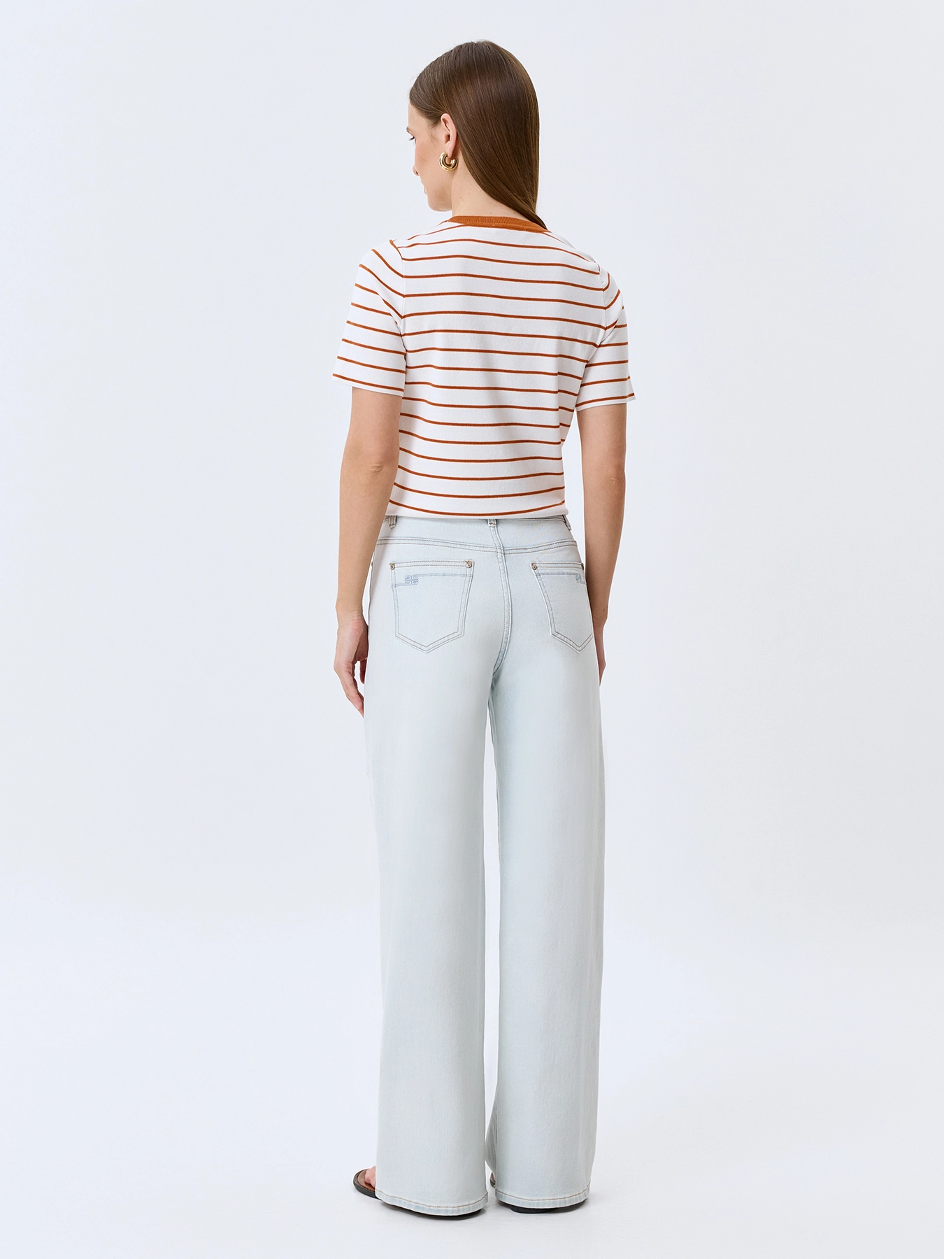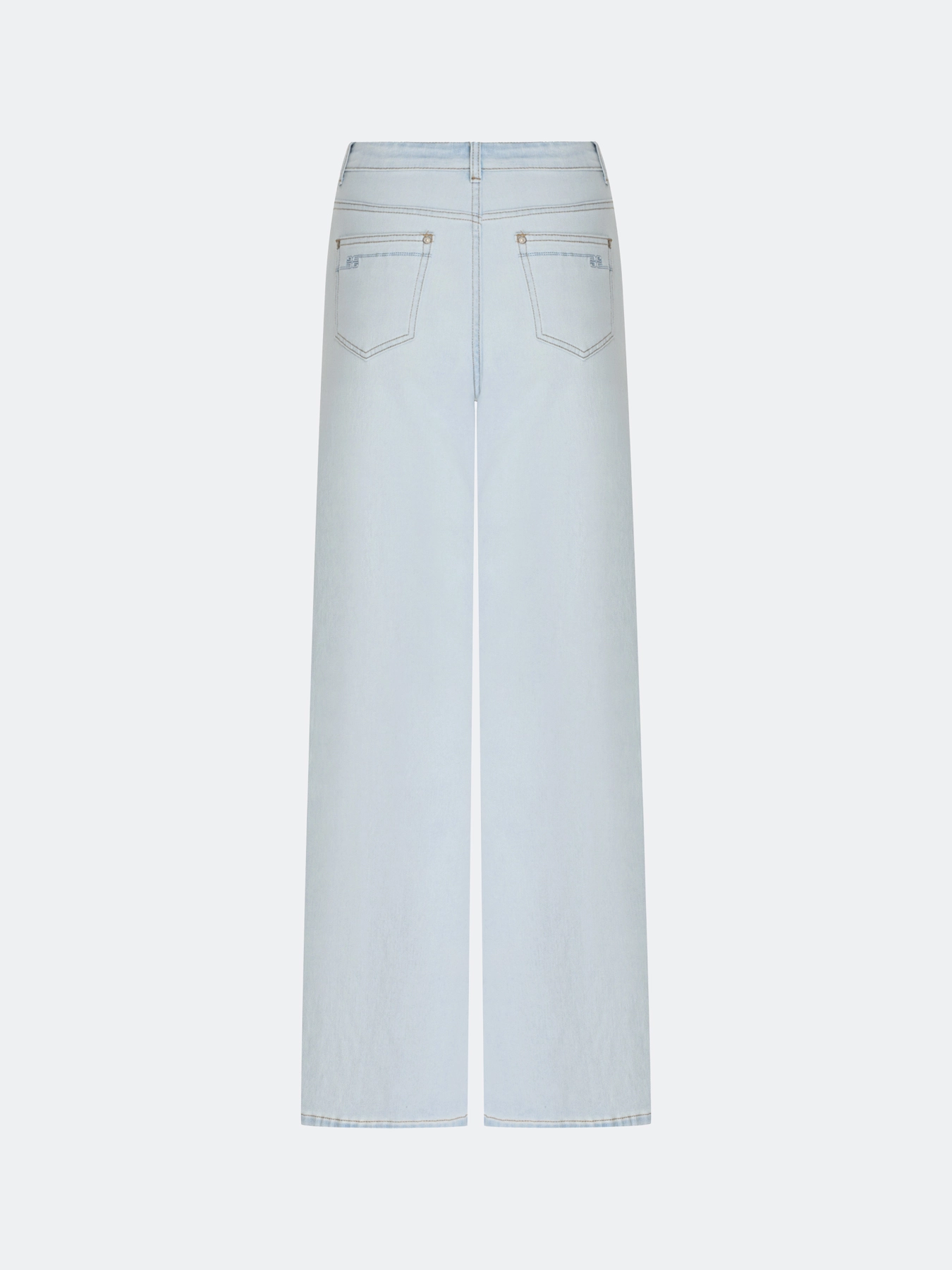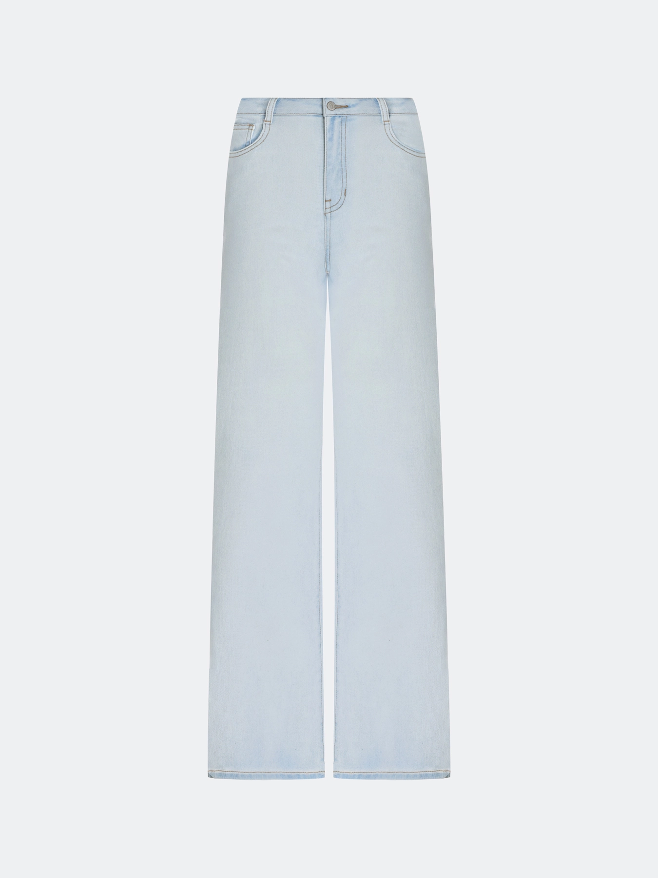 Голубые джинсы средней посадки. Свободный силуэт. Застежка на молнию и металлическую пуговицу. Пять карманов. В составе спандекс.