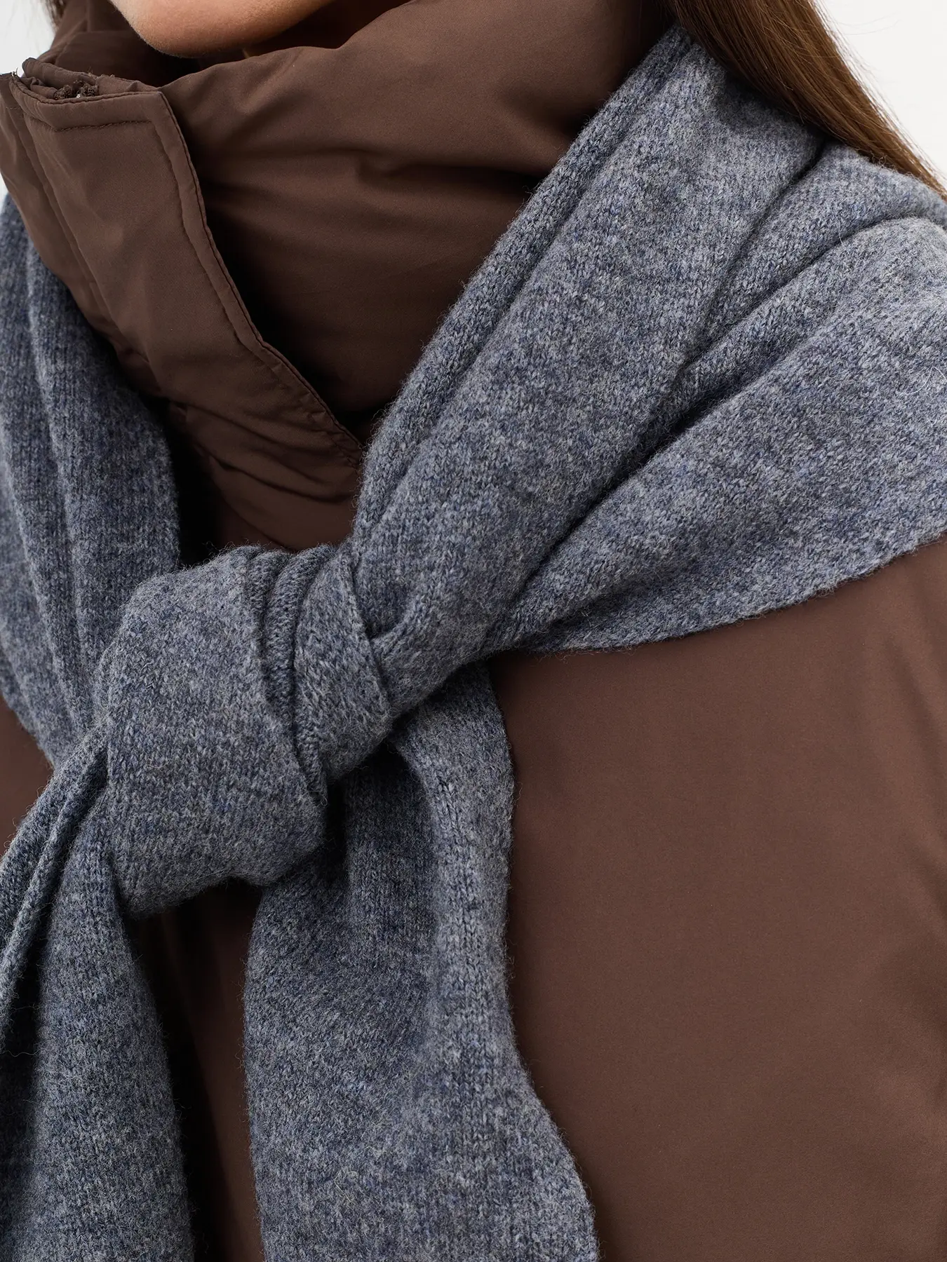 Вязаная косынка из 100% шерсти. Треугольная форма. Универсальный аксессуар вместо головного убора или шарфа. Дополнит образ как с классическим пальто, так и со спортивным пуховиком или курткой.