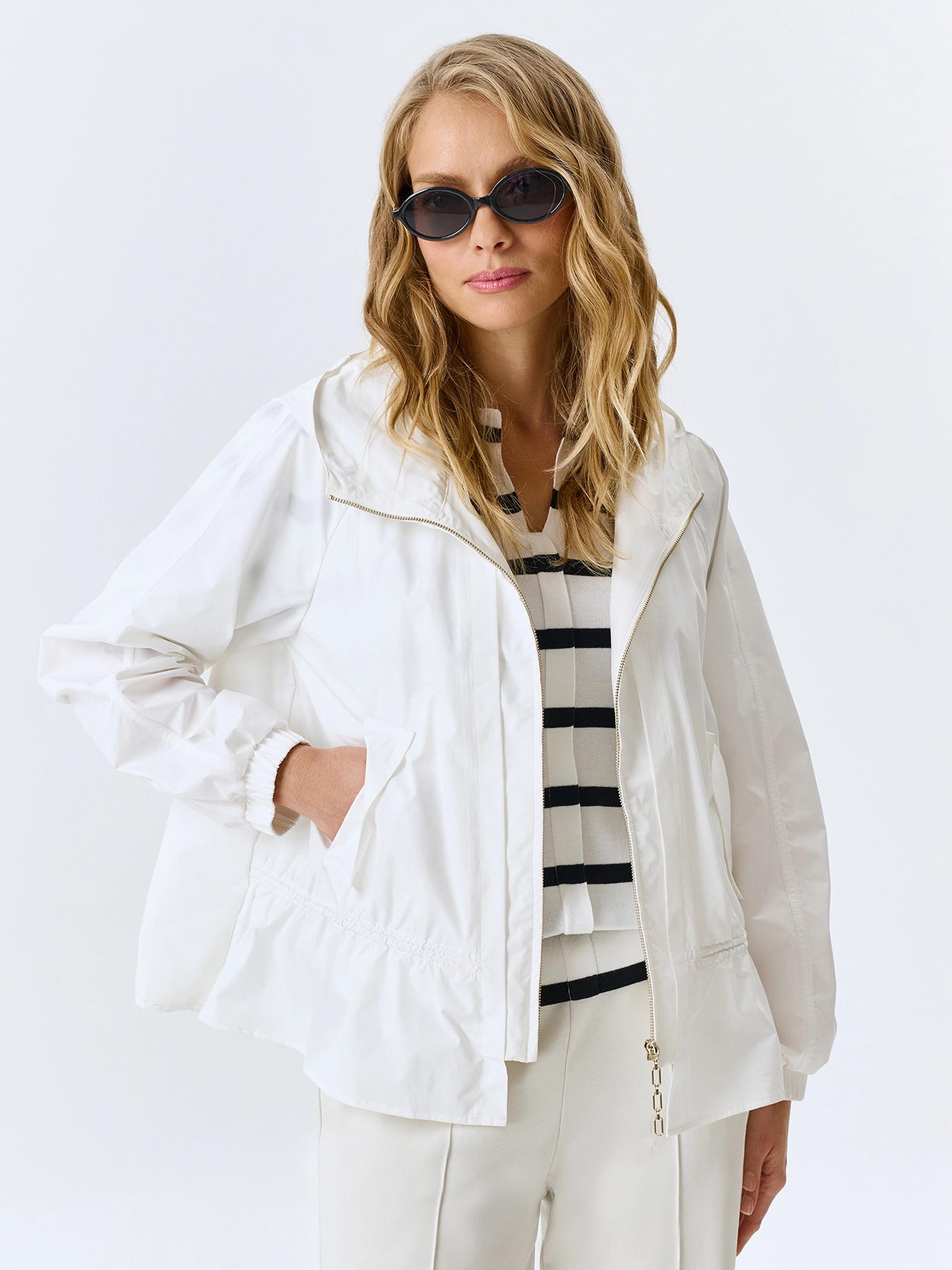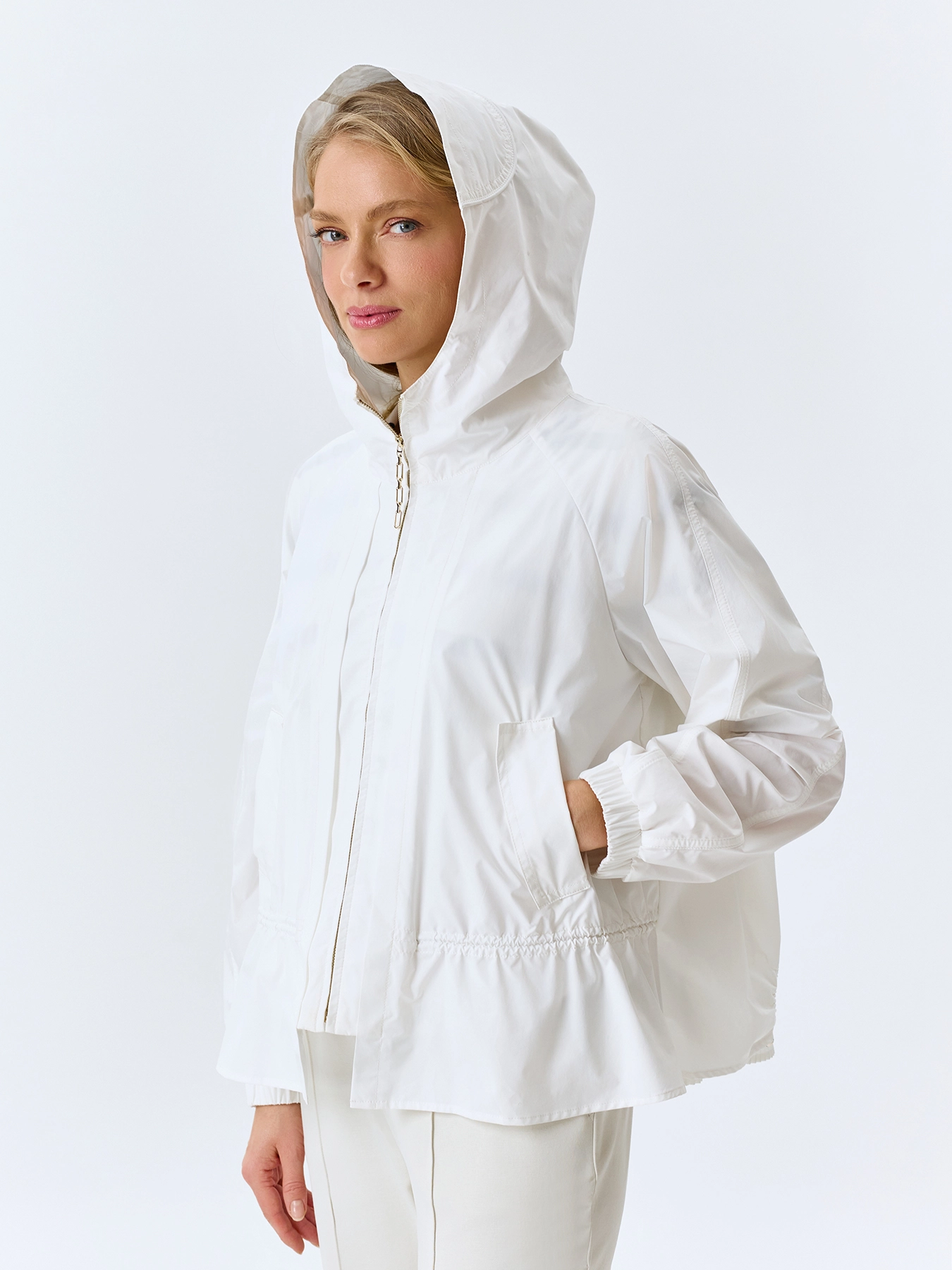 Легкость, стиль и комфорт – всё это о новой ветровке от известного немецкого бренда Bulmer! Свободный силуэт подойдет любой фигуре, а длинный рукав защитит руки даже прохладным весенним днем. Современный дизайн, белый цвет и стильный капюшон сделают вас звездой сезона! Изготовленная из плащевки, она надежно укроет от внезапного дождя. Мягкий легкий фасон позволяет носить ее как самостоятельную вещь или верхом комплекта. Новый товар по отличной цене – ваш идеальный спутник весной и летом!