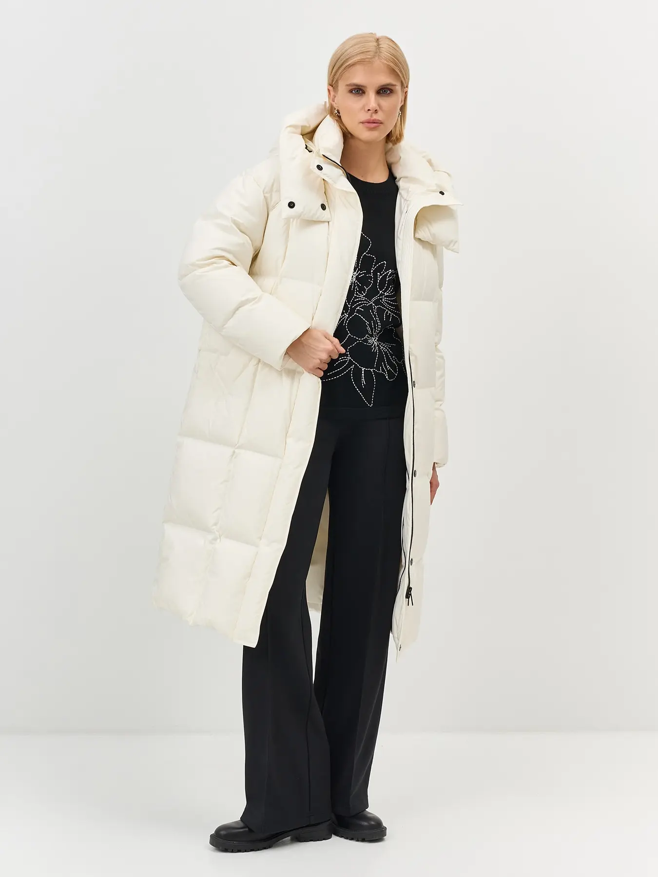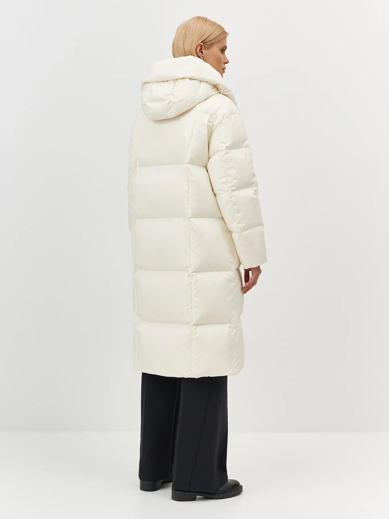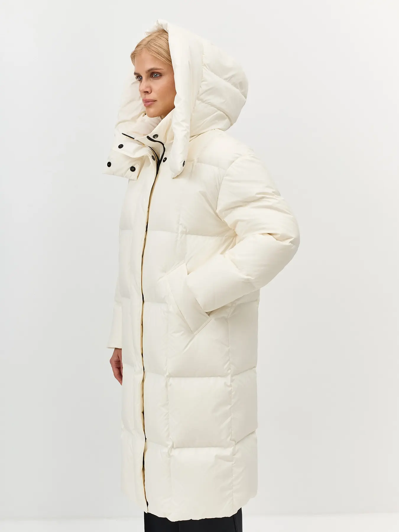 Новинка сезона – стильный молочный пуховик от бренда BULMER из Германии! Удобный оверсайз, удлинённый крой и пуховое наполнение подарят вам тепло зимой и осенью. Внешний слой выполнен из плащевки, защищая вас от непогоды. Кнопки и молния обеспечивают надёжную застёжку. Капюшон добавляет комфорта при носке.  Приобретайте модное пальто уже сейчас и чувствуйте себя уверенно каждый день!
