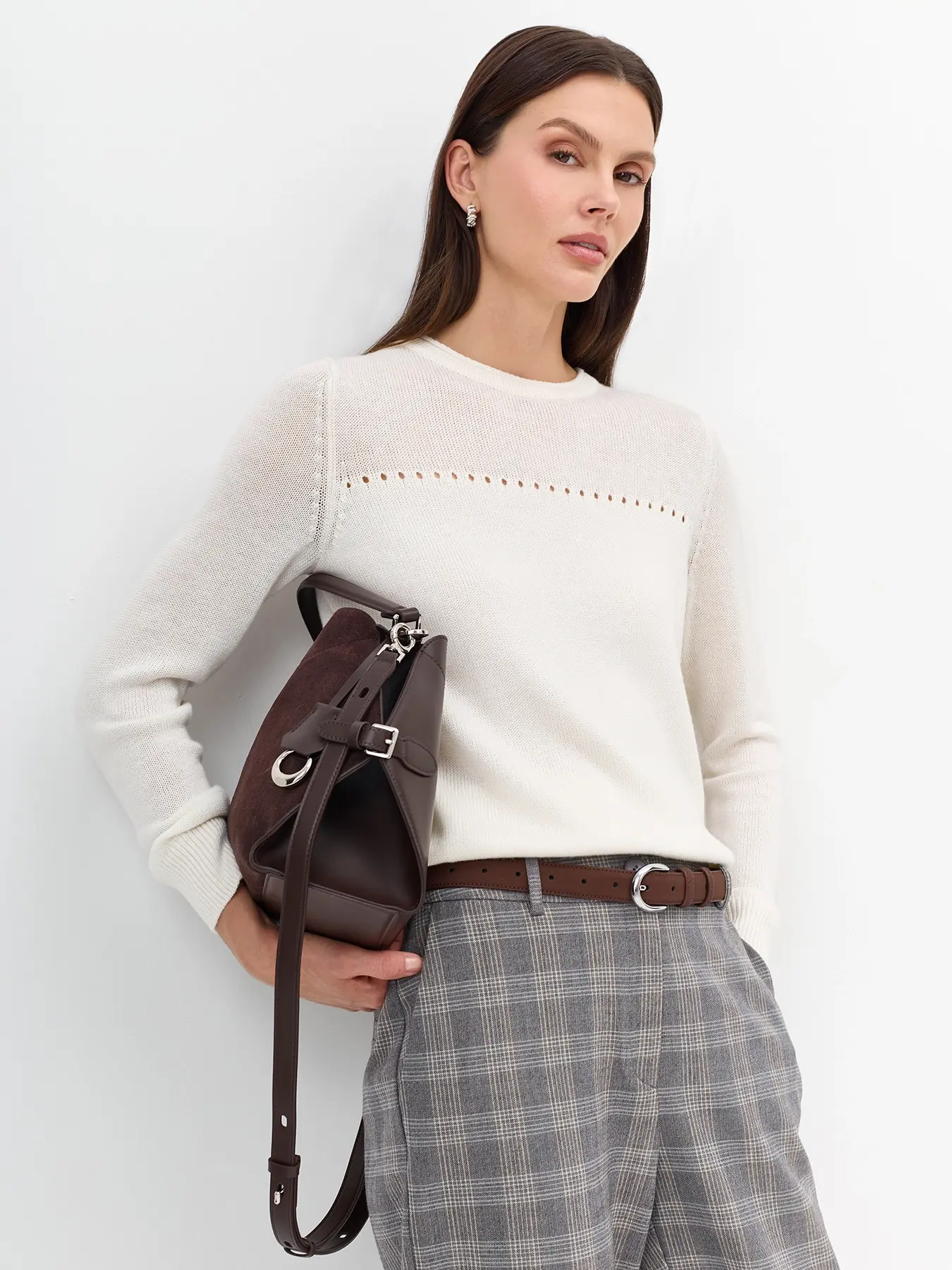 Коричневый ремень из натуральной кожи с овальной пряжкой.