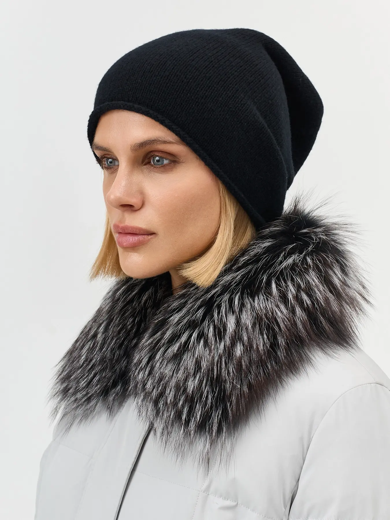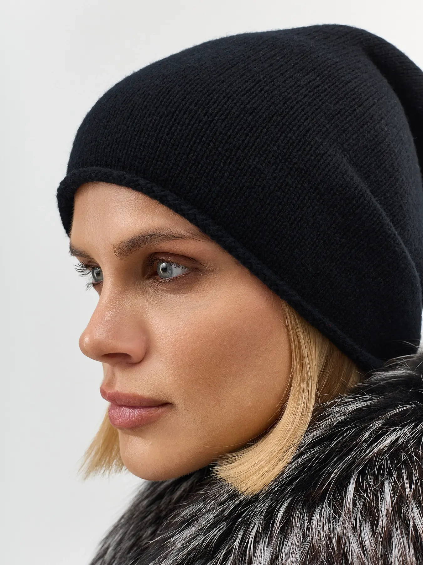 Базовая шапка из 100% шерсти. Гладкая вязка с закручивающимся краем.