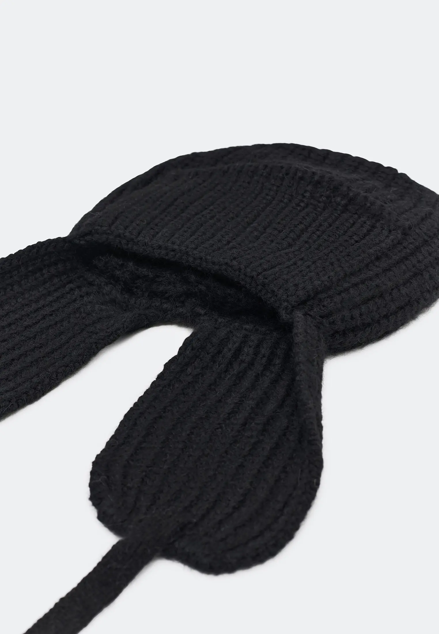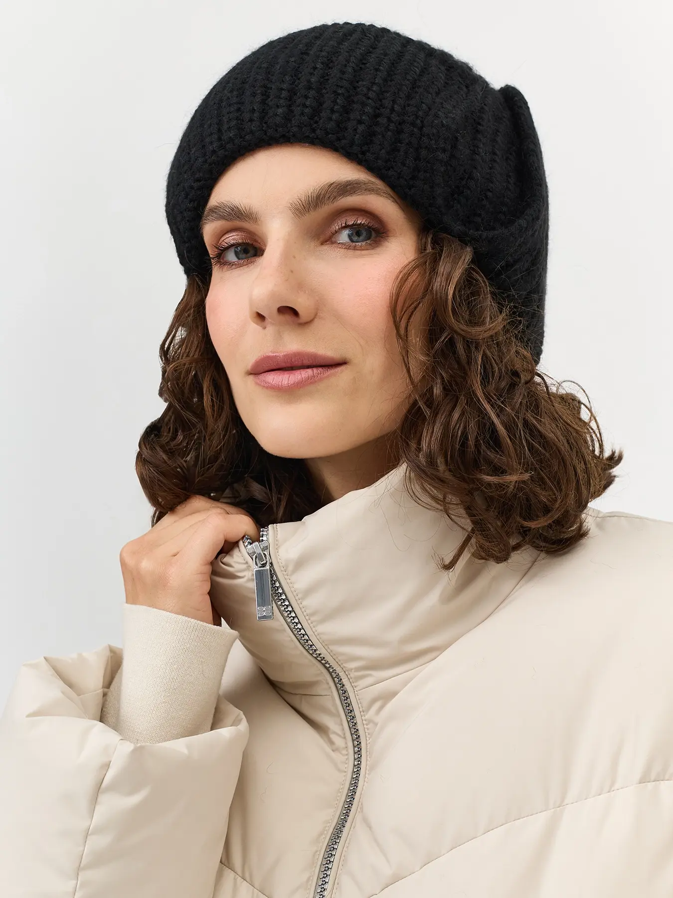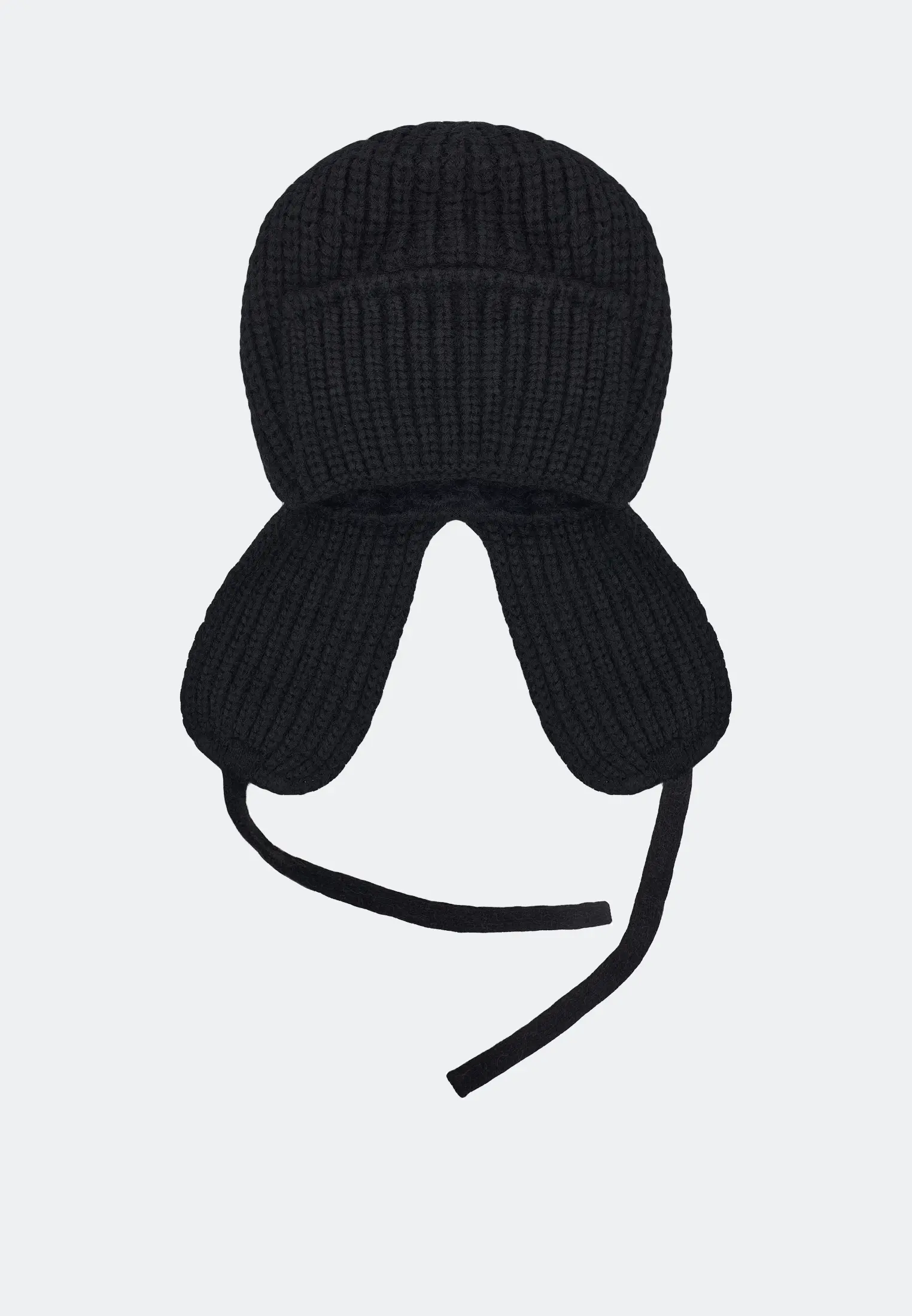 Теплая шапка-ушанка с тонкими завязками. Отделка в рубчик. Дополнена широким отворотом. В составе ангора.