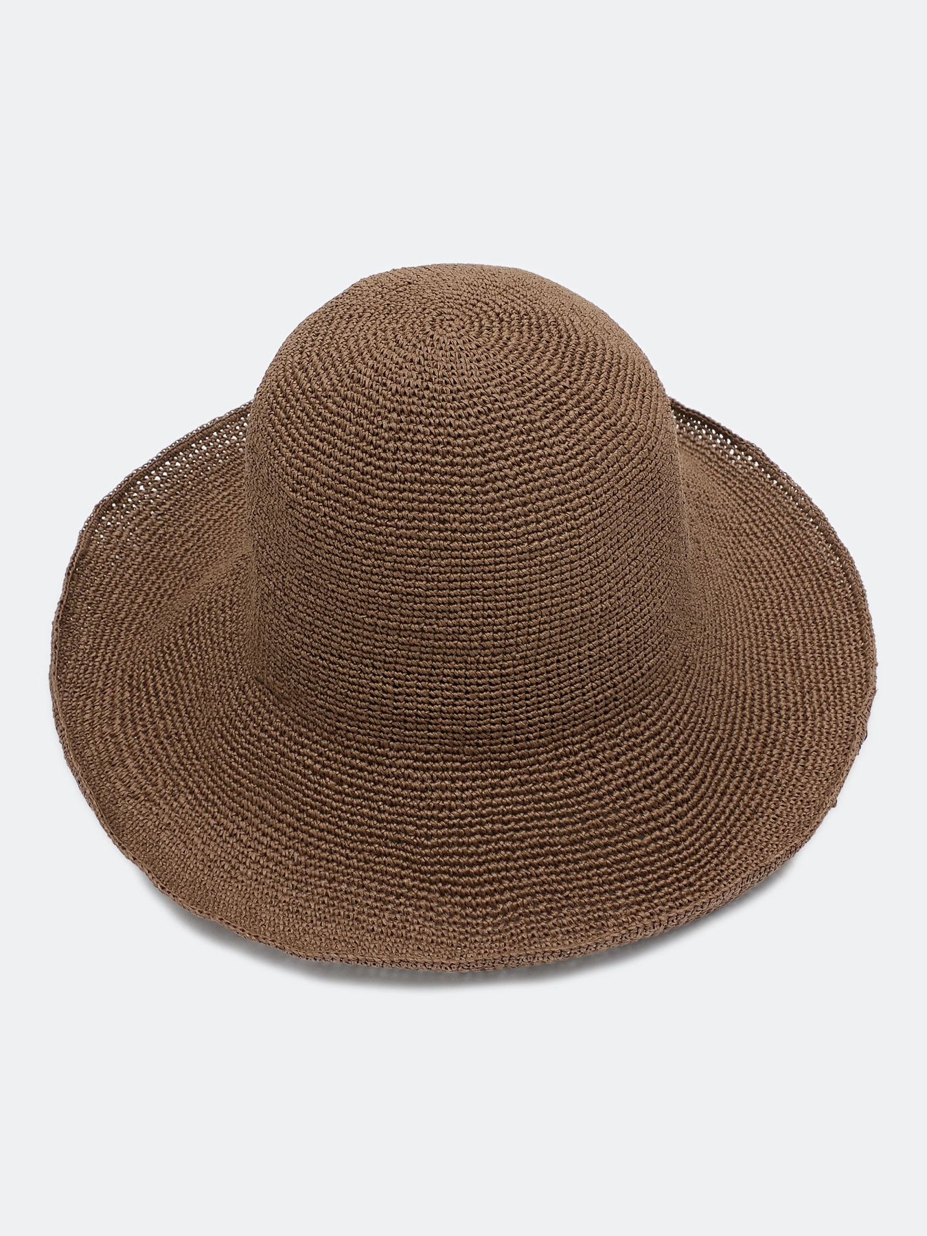 Шляпа-котелок из натуральной бумажной соломки. Плетеная шляпа с округлой тульей и широкими полями с каркасом, благодаря которому можно менять их форму. Регулировка размера с помощью внутренней кулисы.