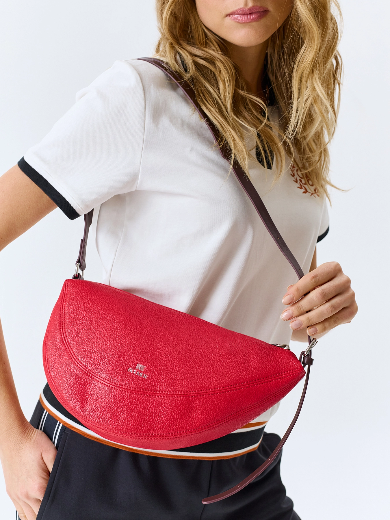Сумка-седло из мягкой натуральной кожи. Одно вместительное отделение на молнии. Длинный регулируемый ремешок из контрастной кожи.