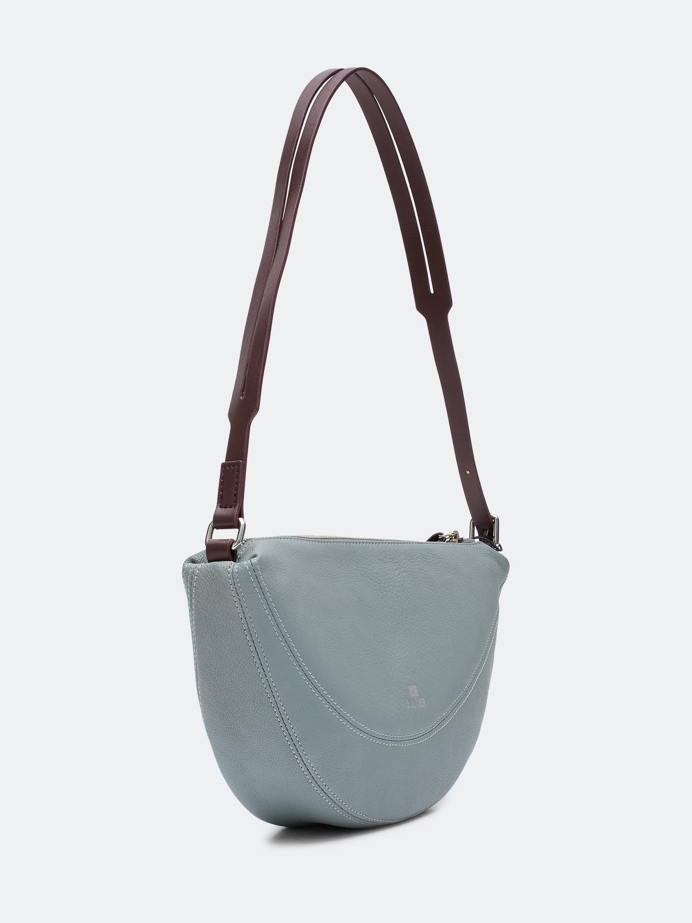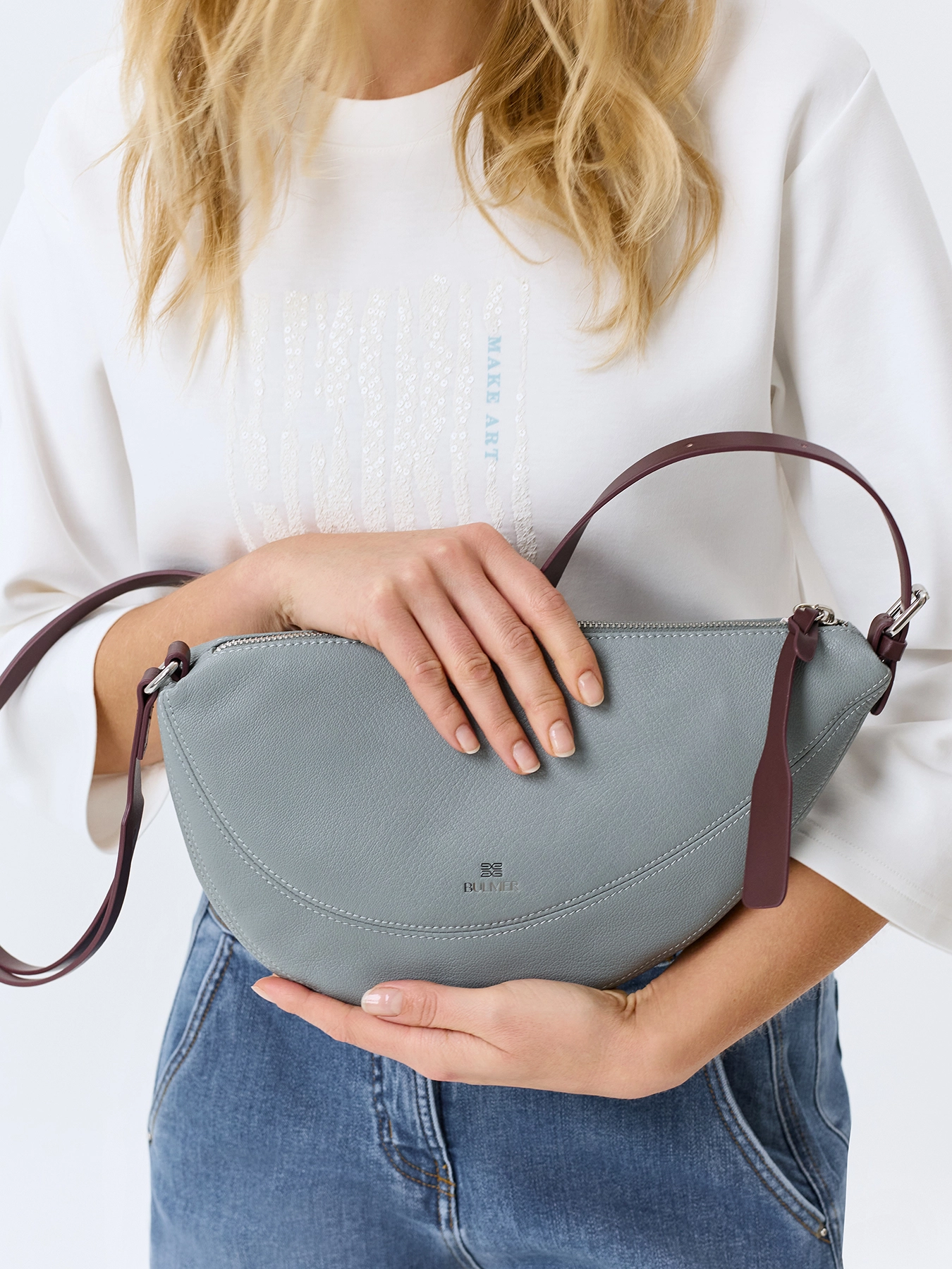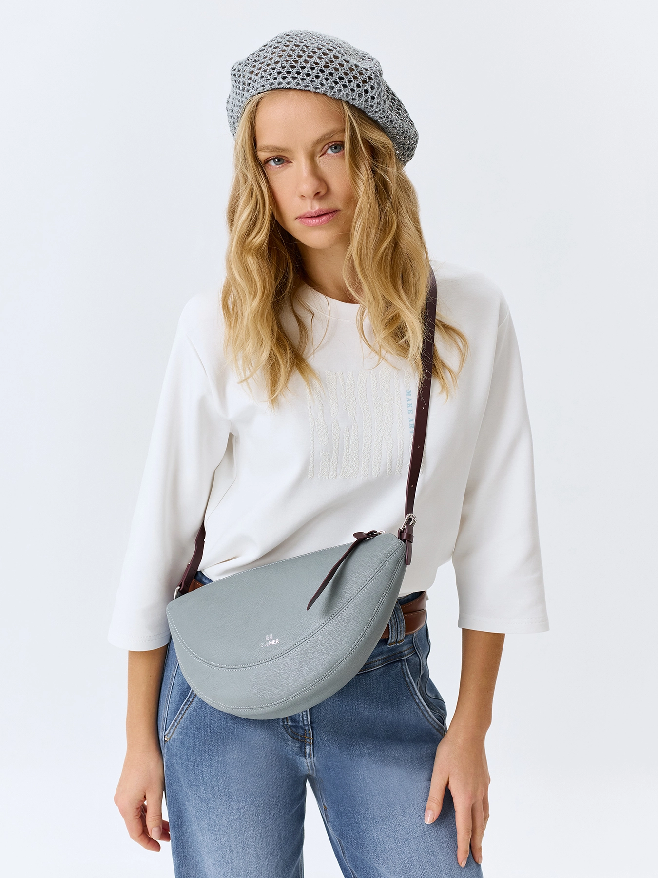 Сумка-седло из мягкой натуральной кожи. Одно вместительное отделение на молнии. Длинный регулируемый ремешок из контрастной кожи.