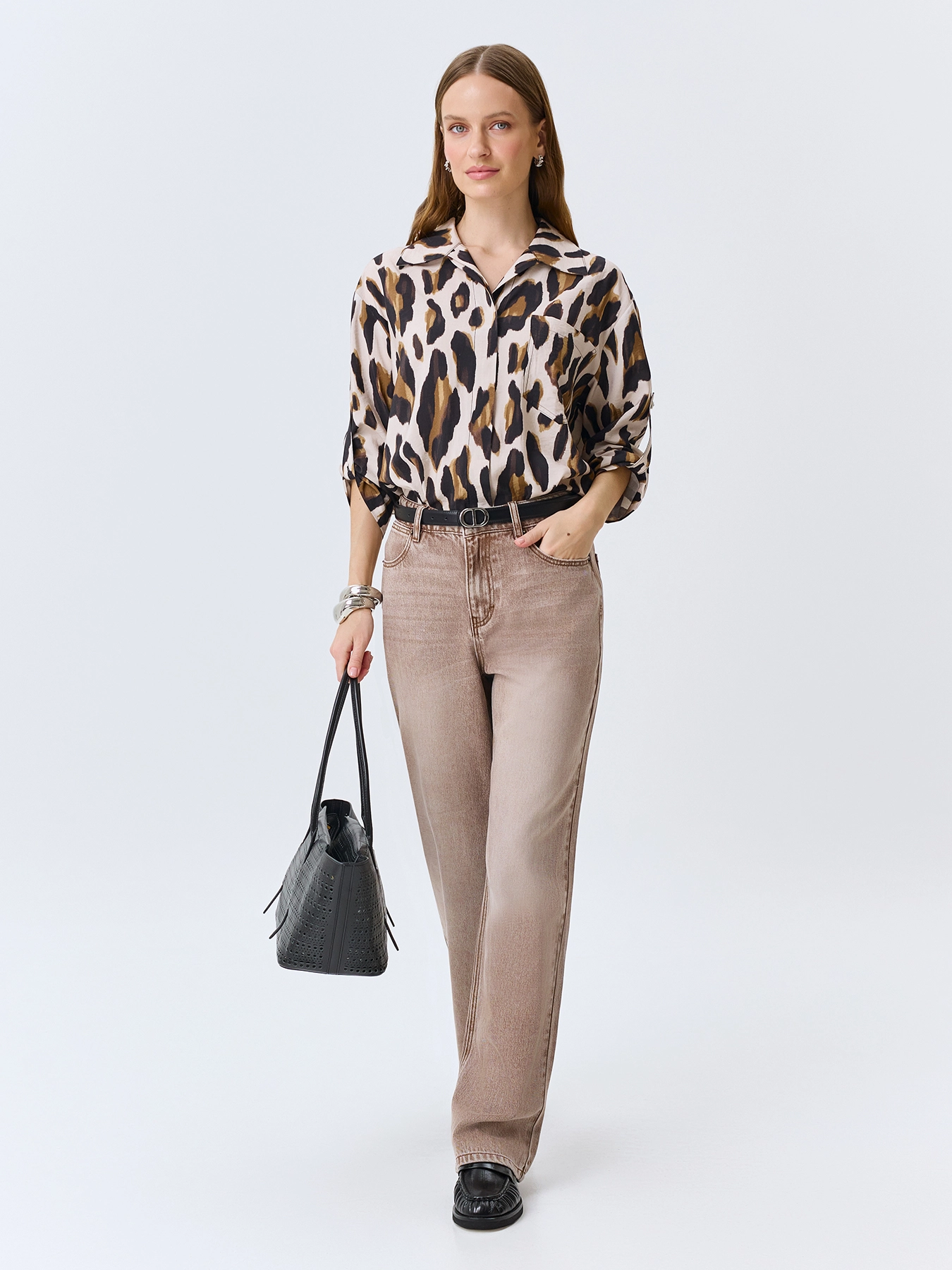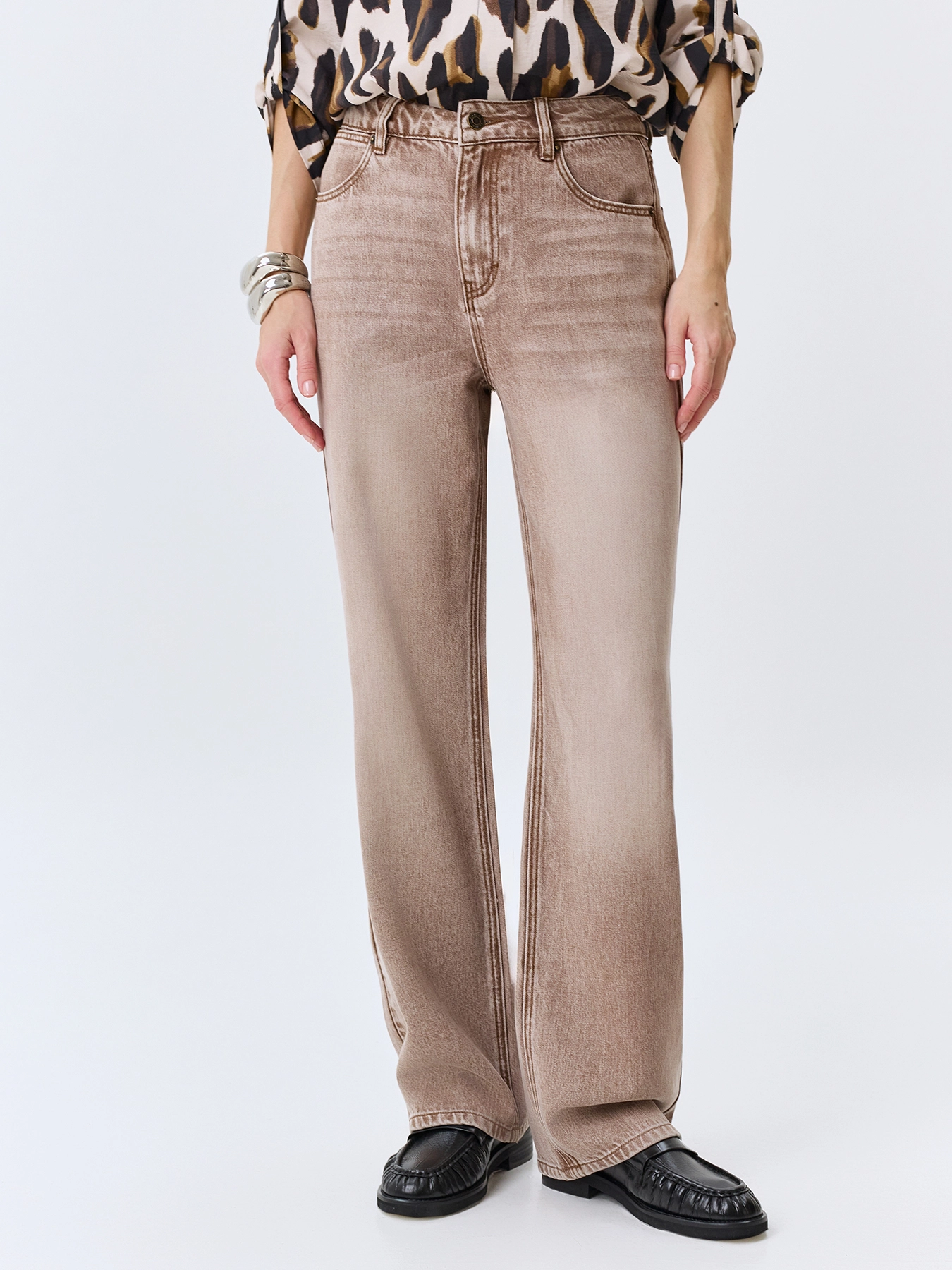 Тонкие джинсы из лиоцелла в цвете мокко. Прямой силуэт. Застежка на молнию и металлическую пуговицу. Пять карманов. Дополнены акцентной варкой.