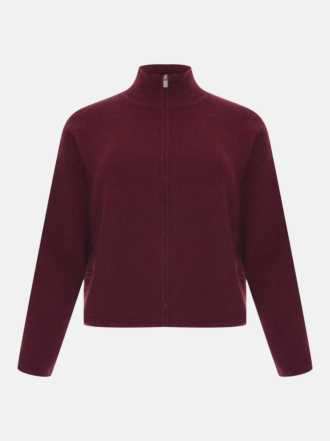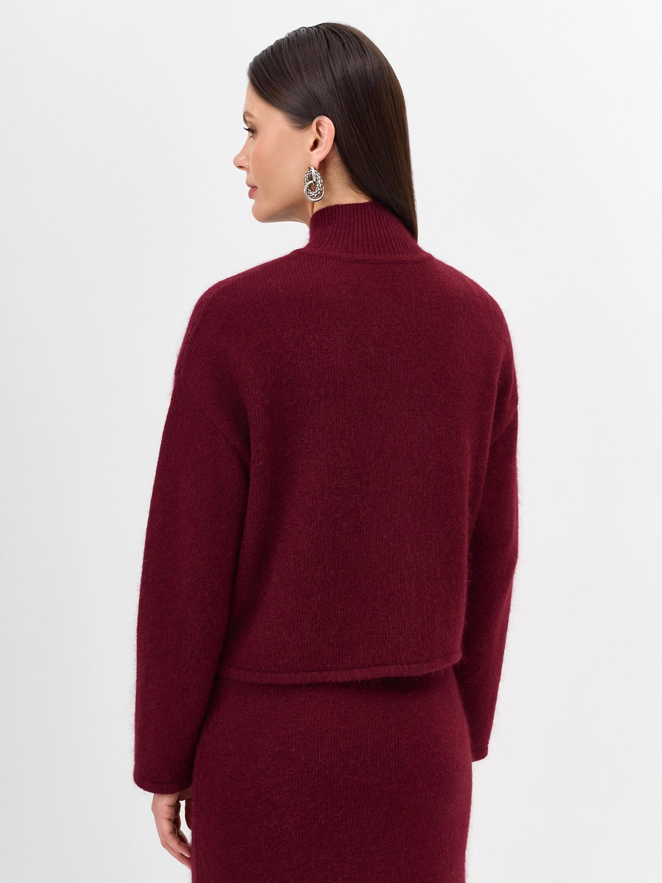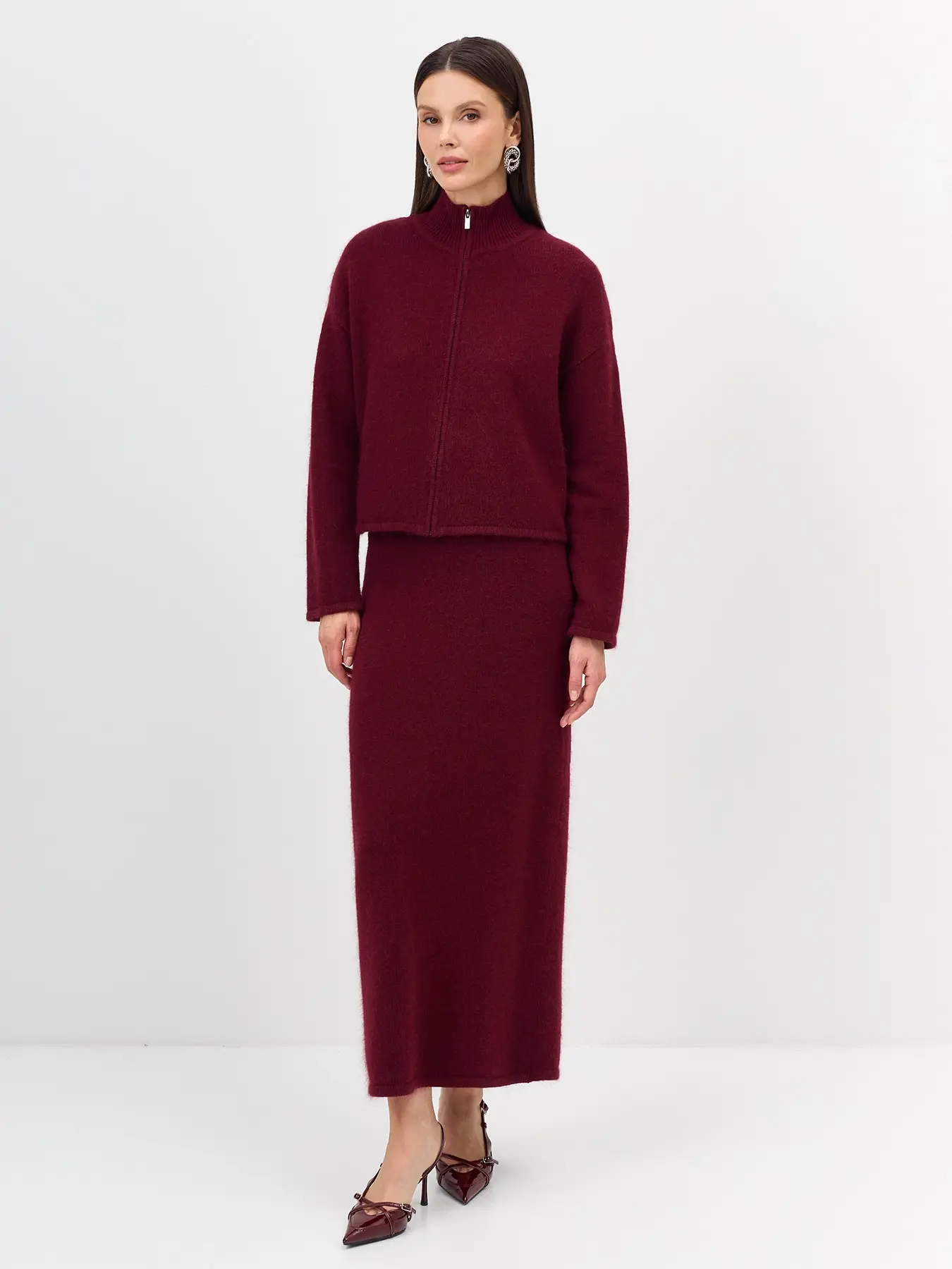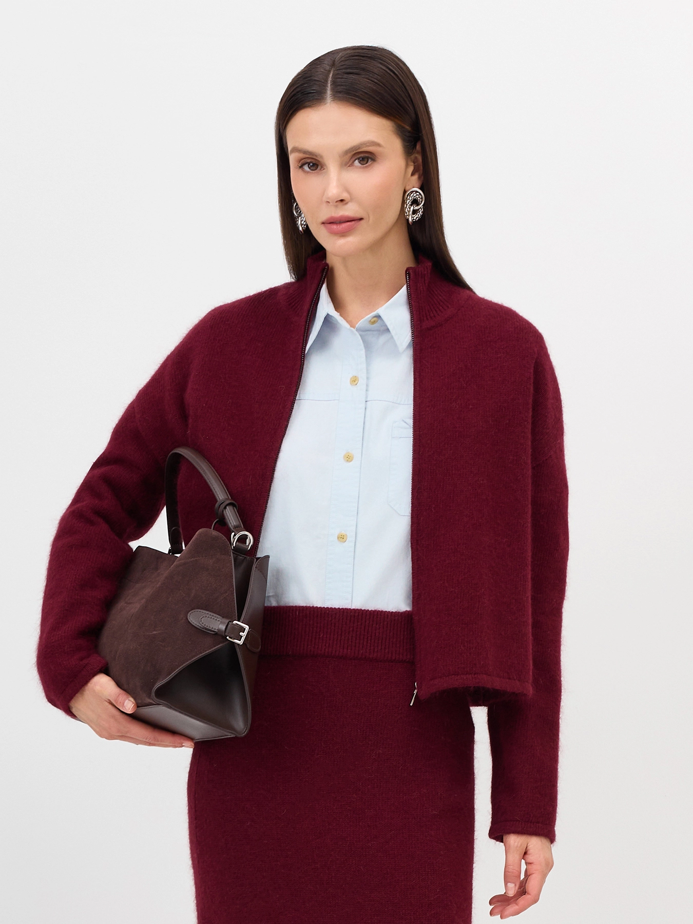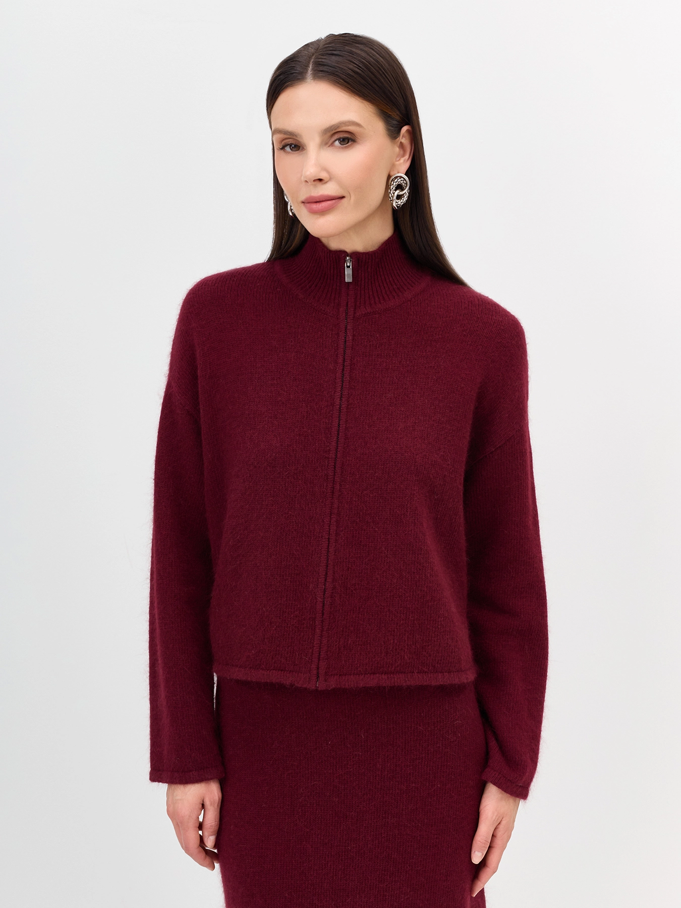 Вязаный укороченный жакет бомбер  с ангорой и шерстью в составе. Свободный силуэт. Воротник стойка. Застежка на молнию. Спущенная линия плеч. Комплект с арт. 5257775.