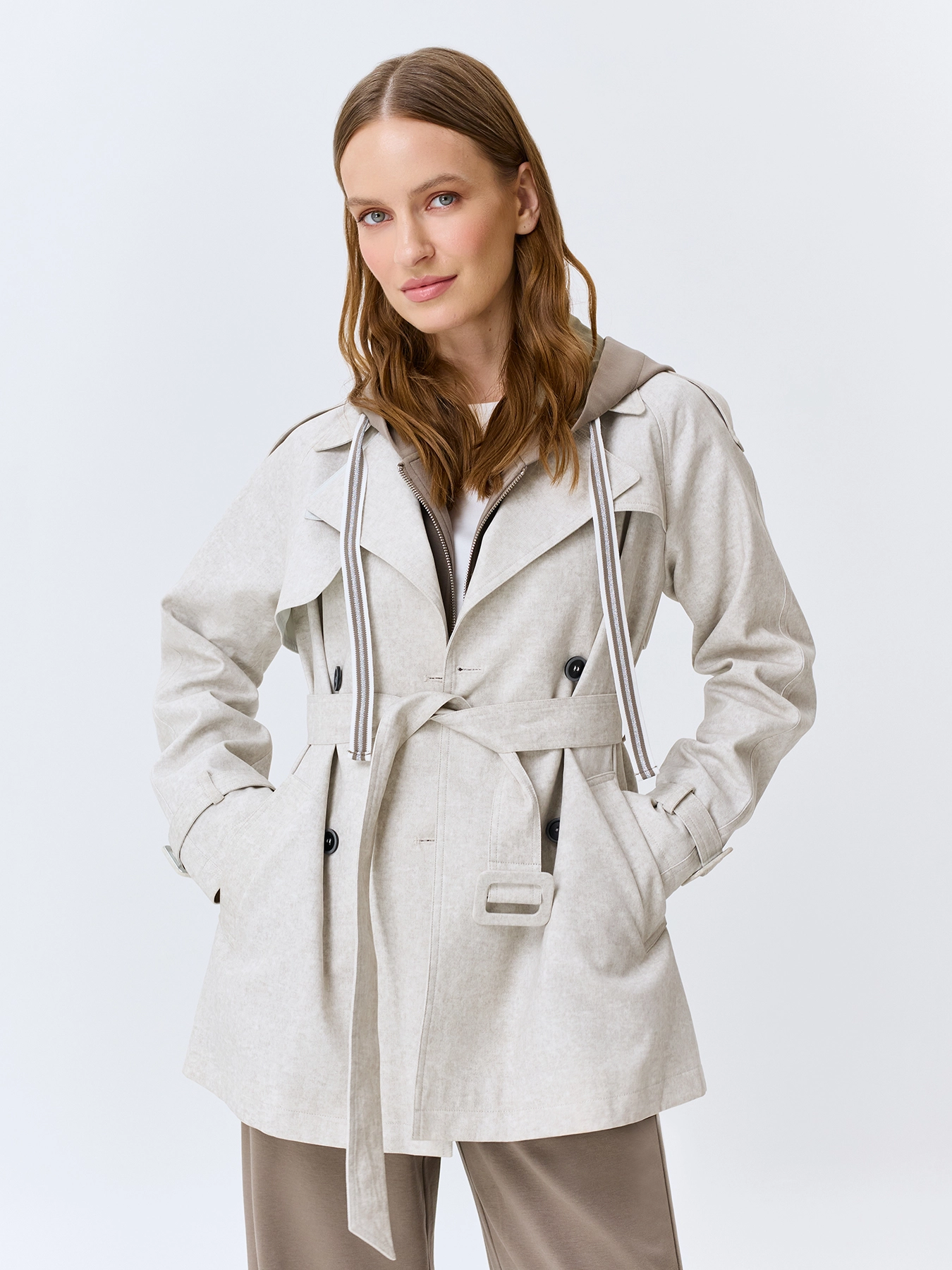 Больших размеров, Легкий, С капюшоном, Тренч, Короткий