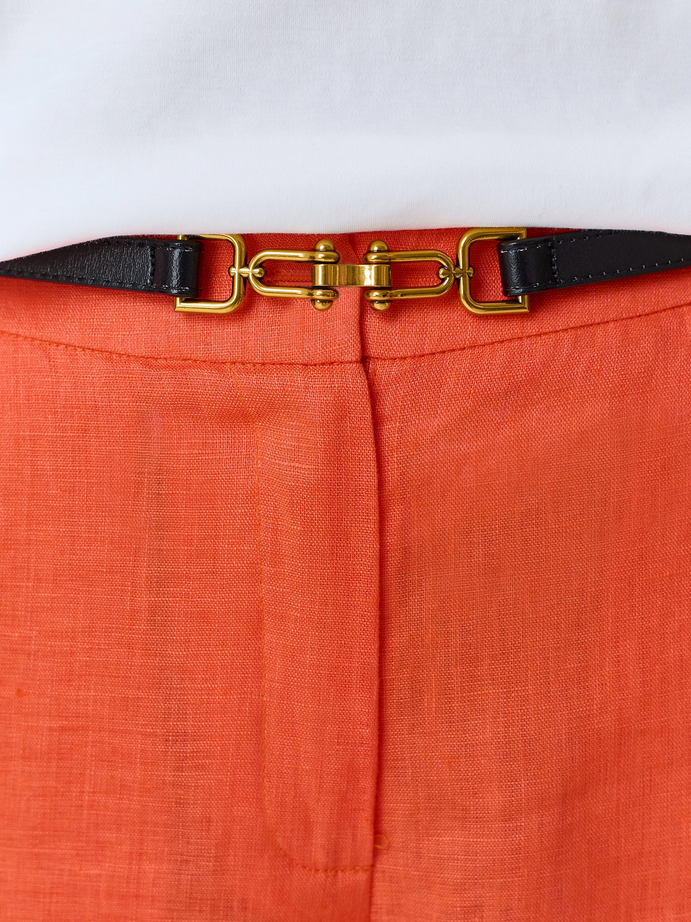 Узкий ремень-пояс из натуральной кожи. Застежка на фигурную пряжку.