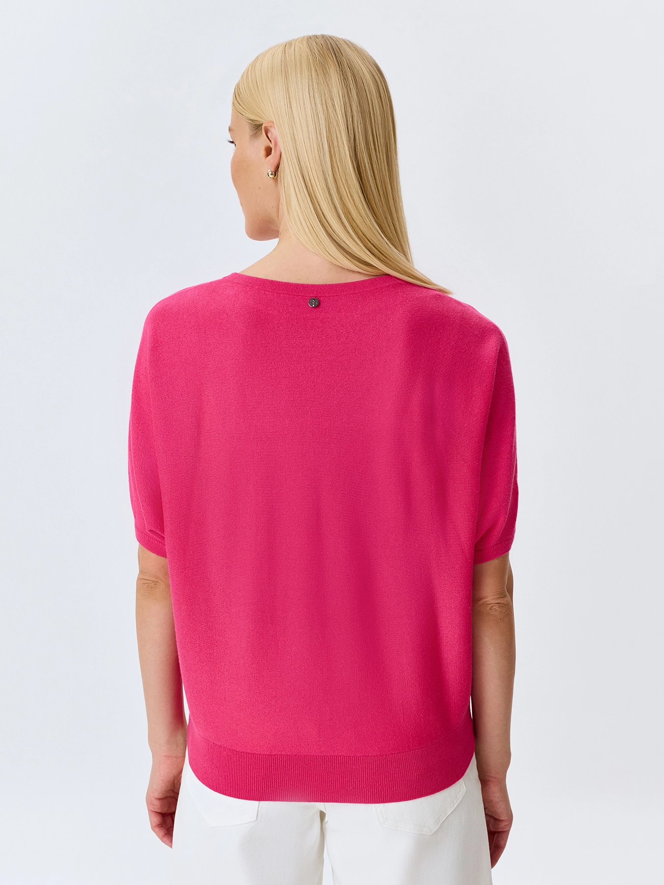 Яркий вязаный джемпер от немецкого бренда BULMER – стильное решение для вашего лета! Свободный прямой силуэт подчеркивает фигуру, а фуксий цвет добавляет яркости вашему образу. Легкий материал обеспечивает комфорт даже в жаркую погоду. Короткий рукав подходит для любого случая – легко носите как повседневную вещь либо дополняйте наряд аксессуарами. Размерный ряд (от EU 38 до RU 54) позволяет подобрать идеальный вариант индивидуально под вас. Новинка сезона – спешите приобрести трендовый джемпер по выгодной цене!
