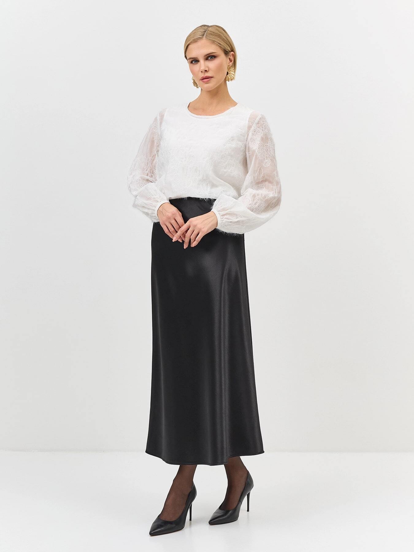 Сатиновая утепленная юбка-макси. А-силуэт. Крой по косой. Застежка на потайную молнию.