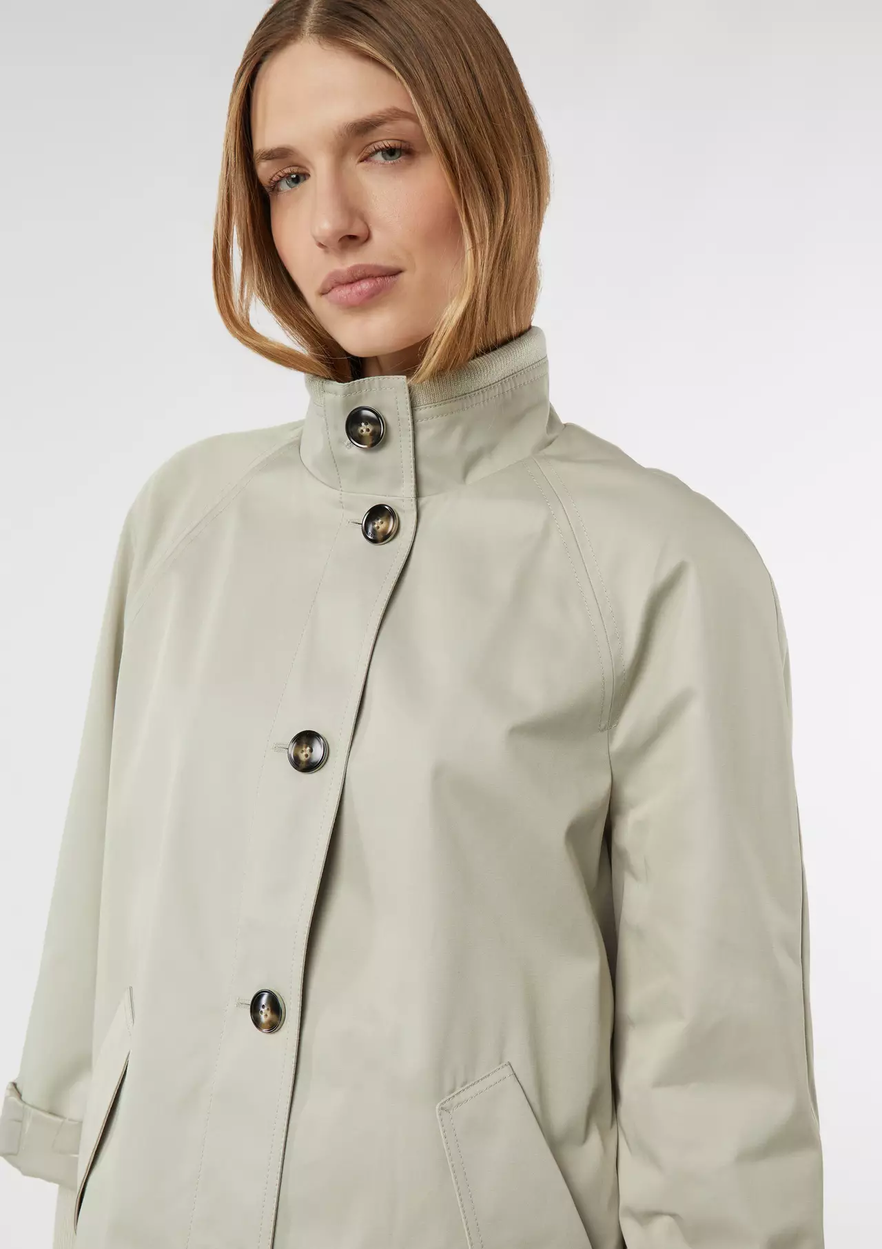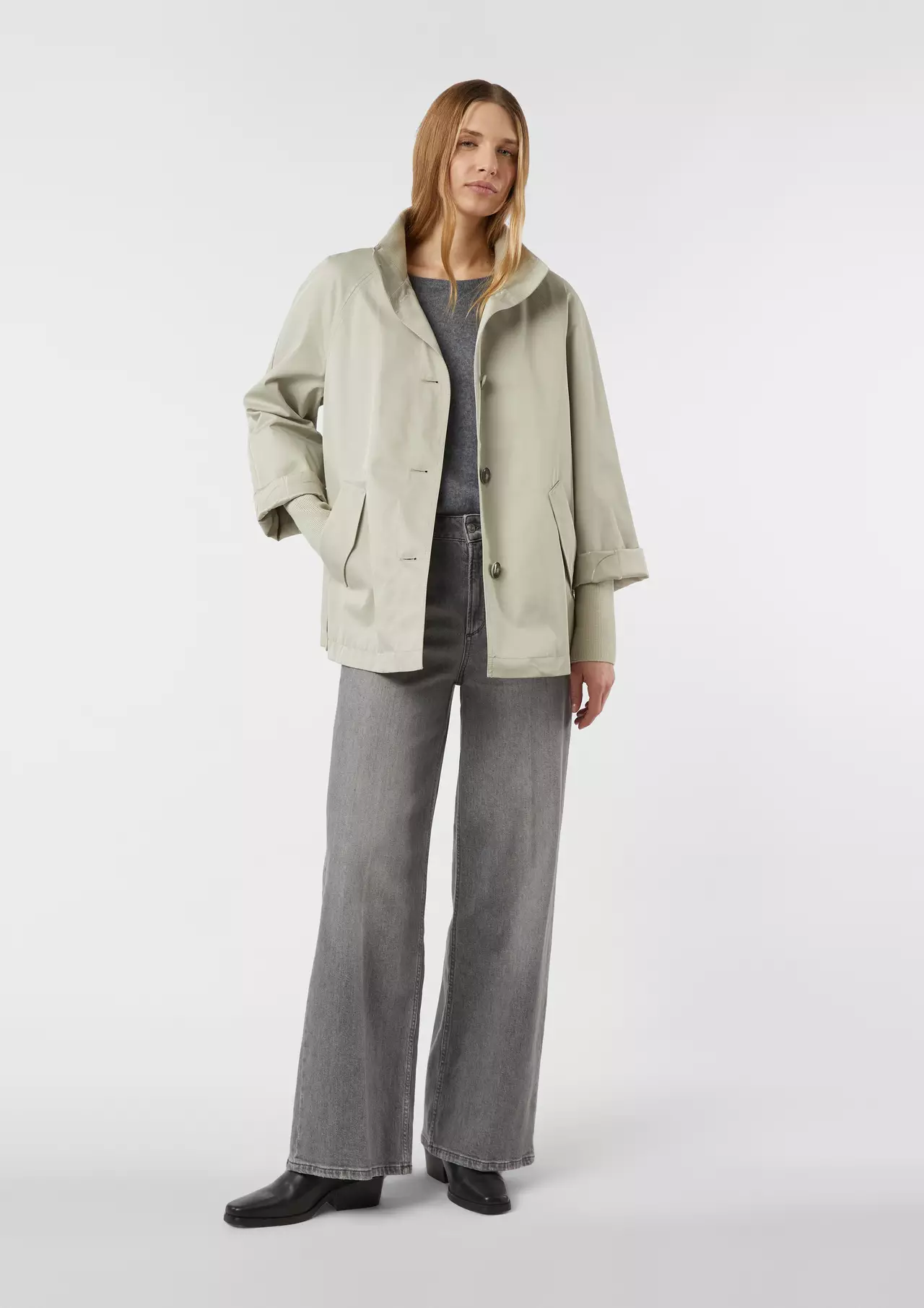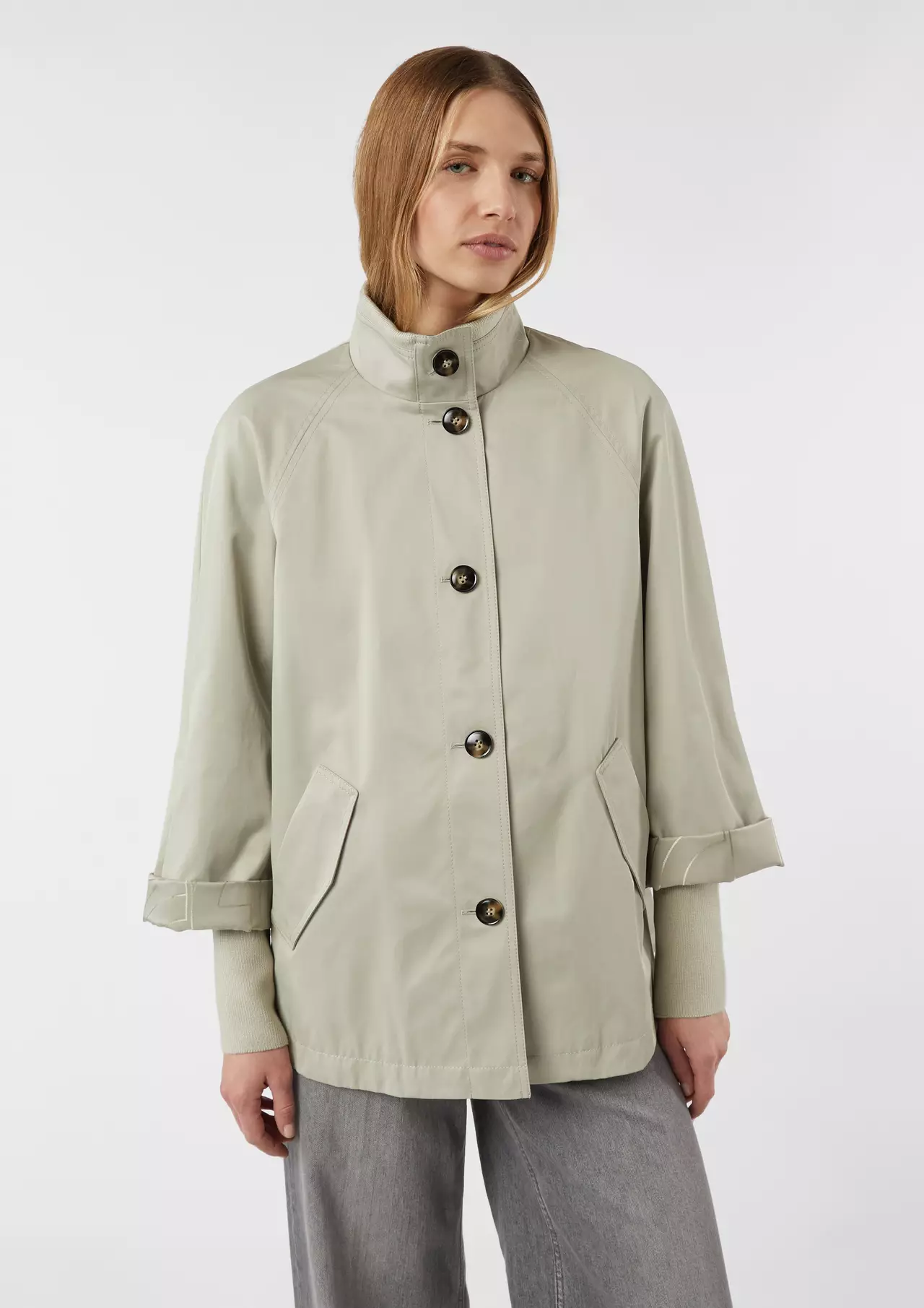 Короткий плащ бренда COMMA – стильный аксессуар для весенне-летнего сезона! Удобный прямой силуэт, длинные рукава и подкладка подарят комфорт даже в прохладную погоду. Элегантность оливкового оттенка и светлых тонов подчеркнет ваш изысканный вкус. Пуговичная застежка обеспечивает удобство одевания и универсальность. Подходит размерам от S (44) до L (48). Сделано в Германии – качество, которому можно доверять. Новинка этого сезона станет изюминкой вашего гардероба!