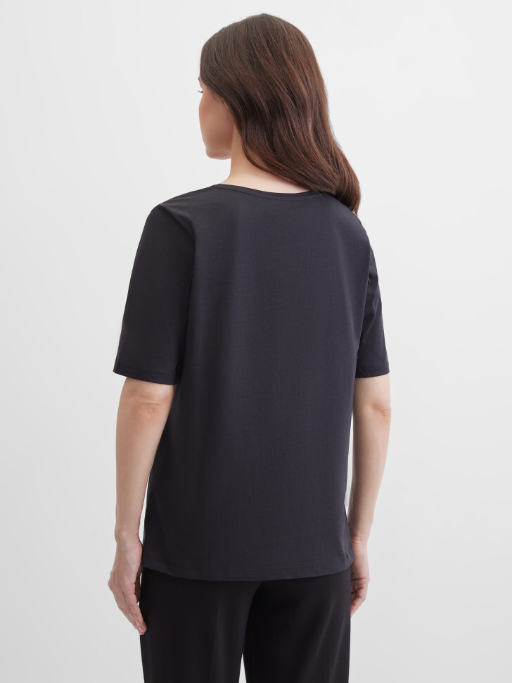 Черная футболка свободного кроя от немецкого бренда Elisa.and.me – идеальный выбор для вашего гардероба! Современные фасоны из Германии знамениты своим качеством и комфортом. Прямой силуэт подчеркивает фигуру, а короткий рукав добавляет удобства при носке. Новая коллекция (NEW) обеспечит актуальность образа. Подходит для повседневного стиля и комфортного отдыха.