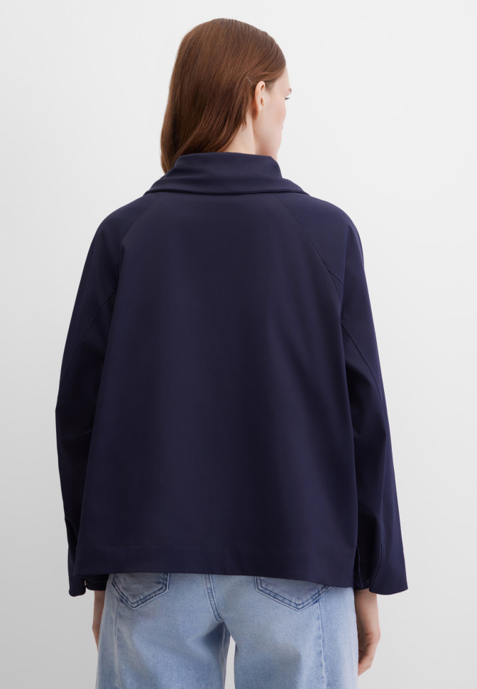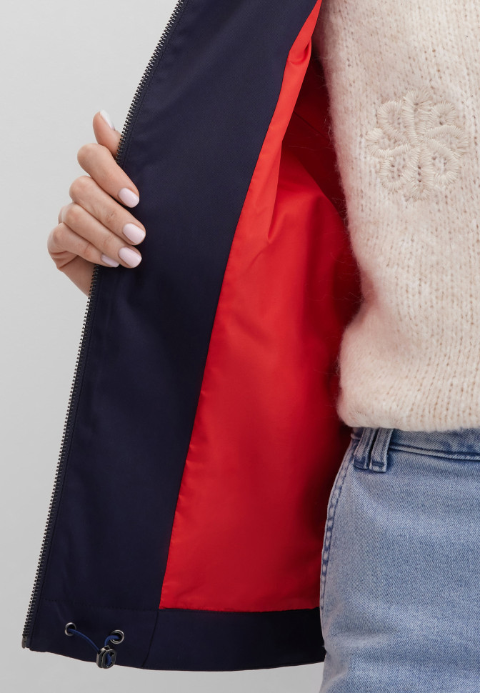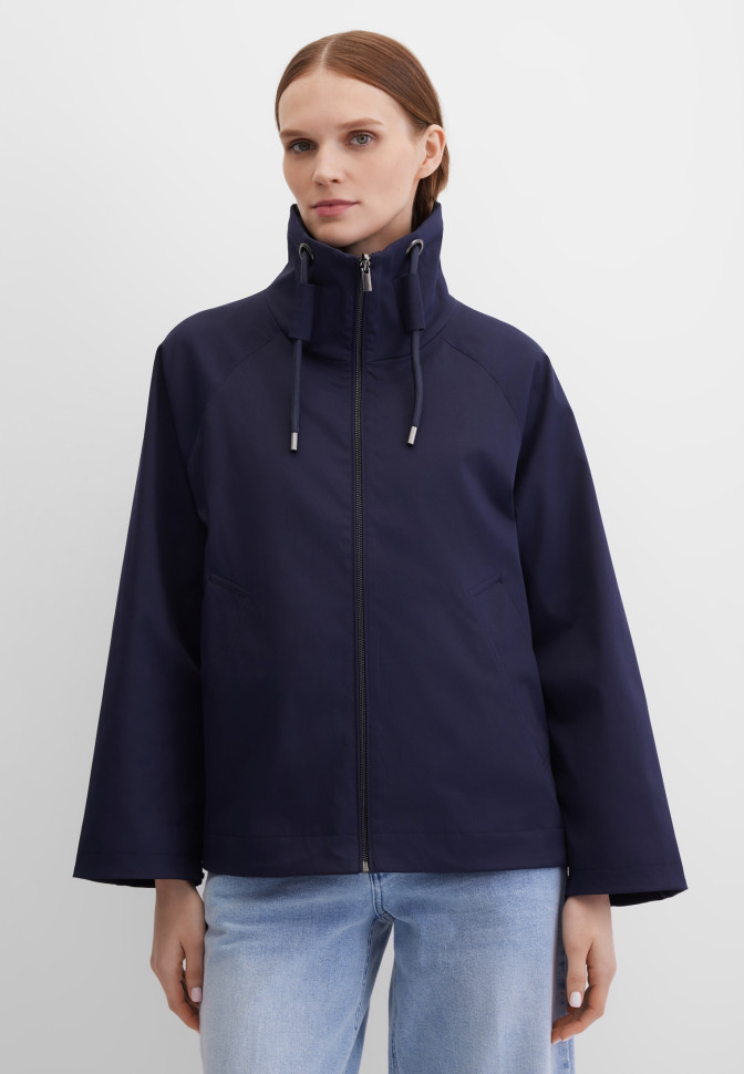 Длина по спинке – 61 см. Куртка-ветровка укороченного кроя слегка расклешенного силуэта на односторонней молнии выполнена из немнущегося плащевого материала. Модель с интересным акцентом в виде контрастной надписи на подкладе. Объёмный силуэт с рукавами-реглан, регулируемые детали — манжеты на кнопках, кулиска по низу, высокий воротник-стойка с утягивающими шнурками в широких шлевках, разрезы по бокам на кнопках — позволяют адаптировать посадку и обеспечивают защиту от ветра. Прорезные карманы с клапанами добавляют функциональности. Материал лёгкий, водонепроницаемый и быстро сохнет — идеально подходит для активного образа жизни.