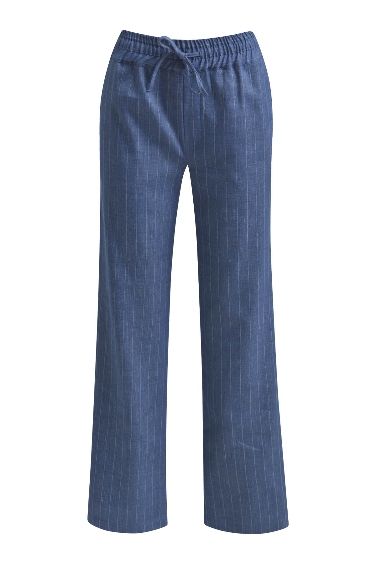 Прямые широкие брюки из смесовой ткани с добавлением льна на резинке с завязками, с карманами в шве, с полосатым принтом