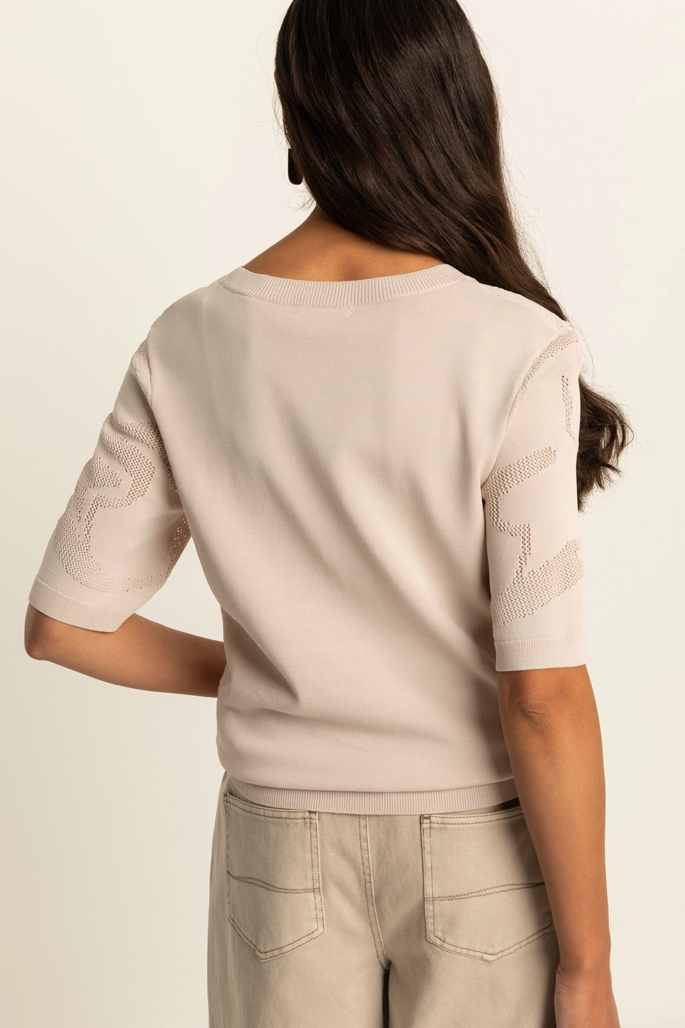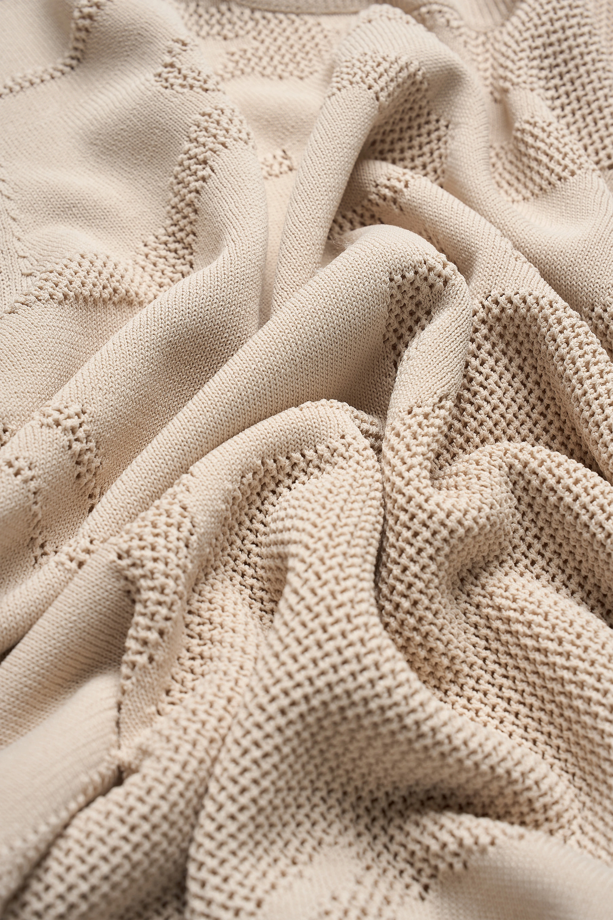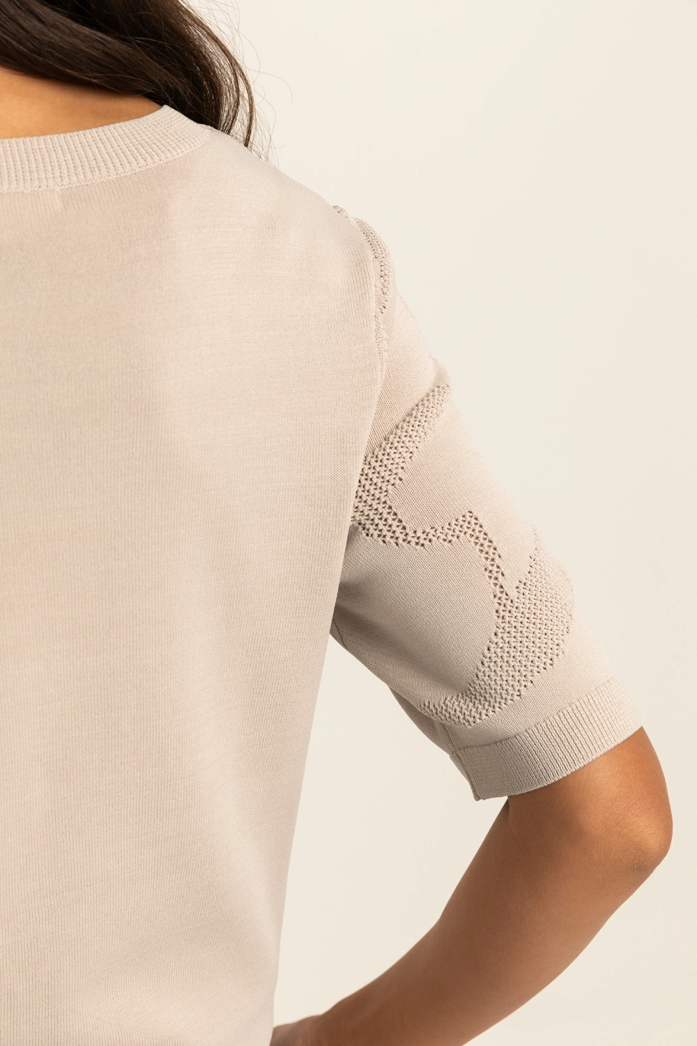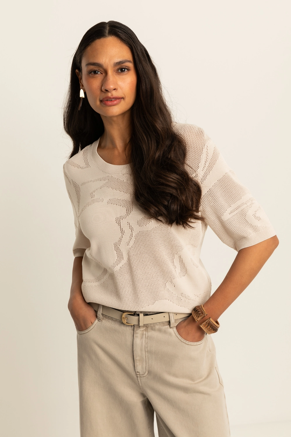 Свитер тонкой вязки – изысканная вязка с тонким узором, создающим глубину и роскошный вид. Полупрозрачная структура придает изделию современный, женственный вид, а удобный крой и короткие рукава обеспечивают ощущение расслабленности. Легкий, воздушный и идеально подходит для бесконечных вариантов сочетаний. Настоящий хит, который легко дополнит как повседневные, так и более нарядные образы.