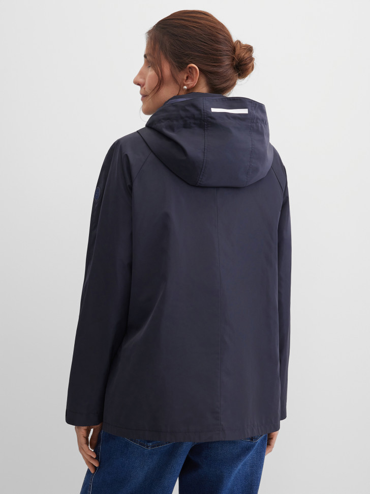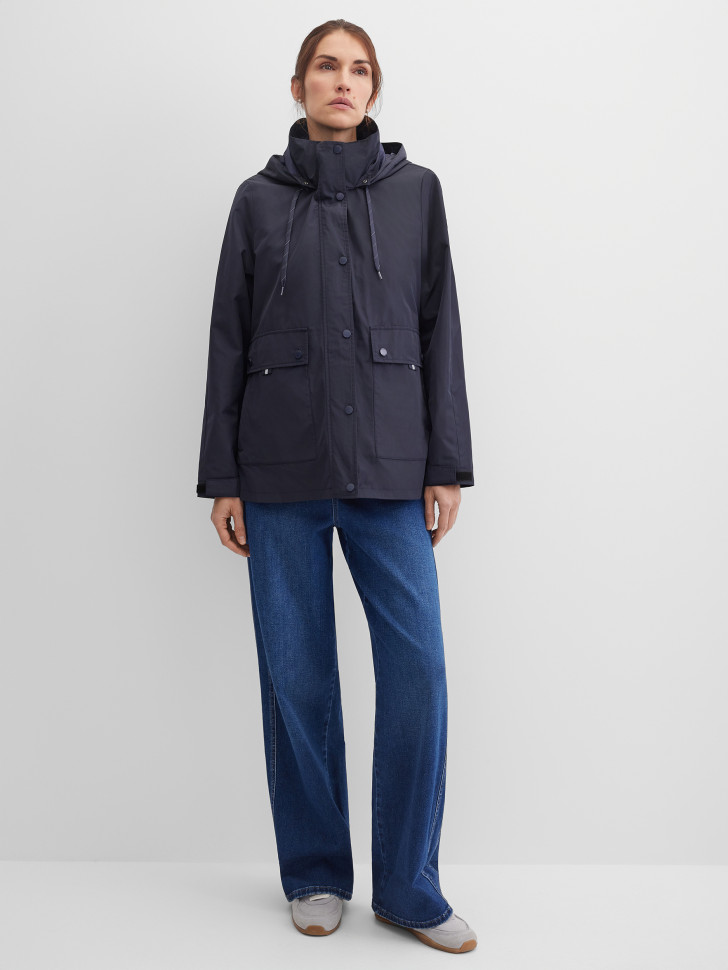 Куртка-трансформер прямого кроя выполнена из гладкой ткани с лёгким благородным блеском и рассчитана на переменчивую погоду. Съёмный капюшон крепится на молнии и кнопках, оснащён утяжкой и светоотражающей полоской для дополнительной видимости. Застёжка на двустороннюю молнию и кнопки под ветрозащитной планкой надёжно защищает от ветра. Внутренняя стёганая жилетка пристёгивается на кнопки и может использоваться отдельно для регулировки теплоизоляции. Карманы представлены в нескольких форматах — накладные на кнопках и прорезные на молниях, дополненные светоотражающими элементами. Паты на рукавах позволяют регулировать ширину. Прорезиненная эмблема на рукаве завершает образ и подчёркивает современный характер модели. Многофункциональная, универсальная модель для города, поездок, путешествий, повседневных демисезонных образов.