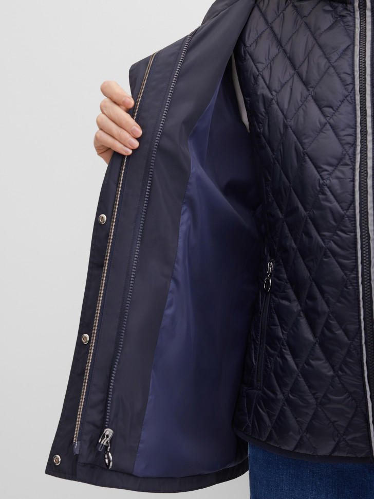 Куртка с жилетом GERRY WEBER – стильный выбор для переменчивой погоды весны и осени! Благодаря сочетанию темно-синего оттенков, плащевке и легкому синтепоновому наполнению вы будете выглядеть модно и чувствовать себя комфортно. Дополнительный жилет обеспечивает удобство регулирования температуры, а фасон с капюшоном защитит от неожиданного дождя. Подходит для женщин классических и стильных образов, представлена широкая размерная сетка. Сделано в Германии, новый товар!