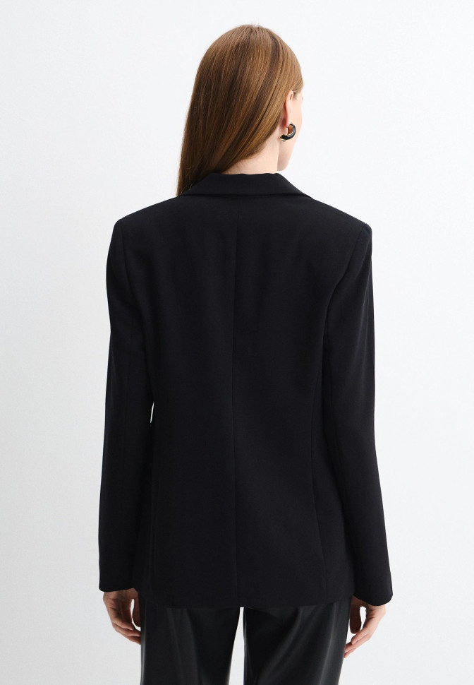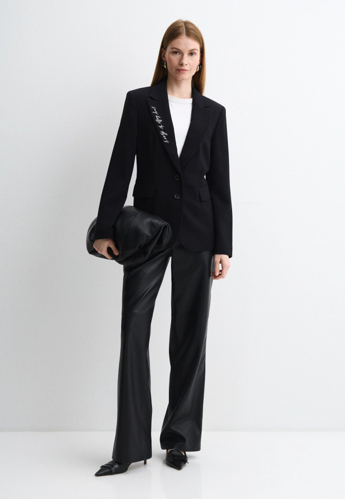 Длина по спинке 68 см. Жакет с деликатным акцентом в виде вышивки на лацкане и аккуратной отделкой карманов. Приталенный крой подчёркивает фигуру, а универсальный дизайн делает модель актуальной как для деловых, так и для вечерних образов.