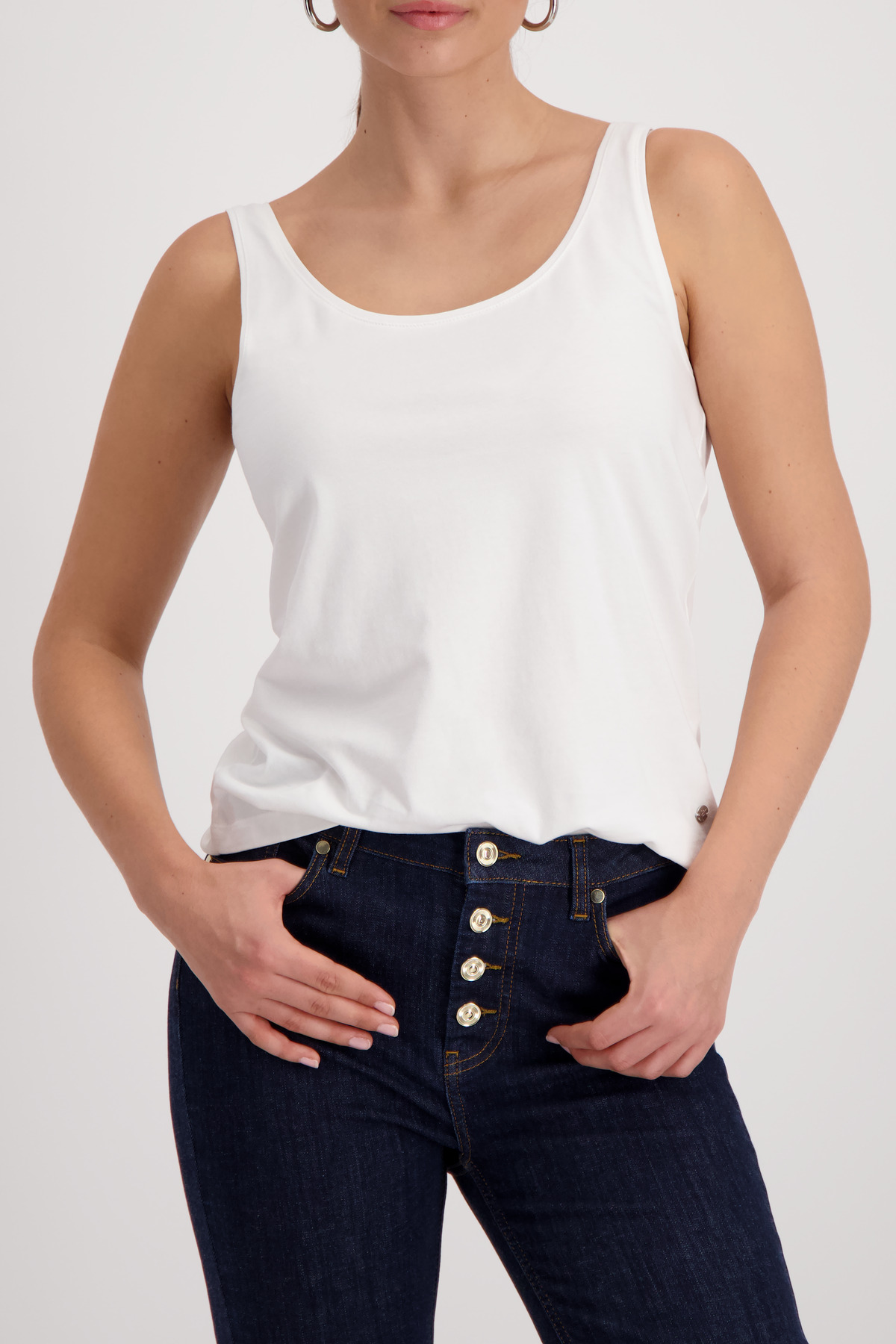 Базовый топ белого цвета от бренда MONARI  — незаменимая вещь в гардеробе каждой женщины! Подходит для ежедневной носки благодаря полуприлегающему силуэту без рукавов. Удобен в носке, подчеркивает достоинства фигуры и сочетается со многими образами. Доступные размеры: 44-52 RU – легко подобрать свой идеал. Идеальный выбор для тех, кто ценит качество европейского уровня и актуальность новинки сезона.