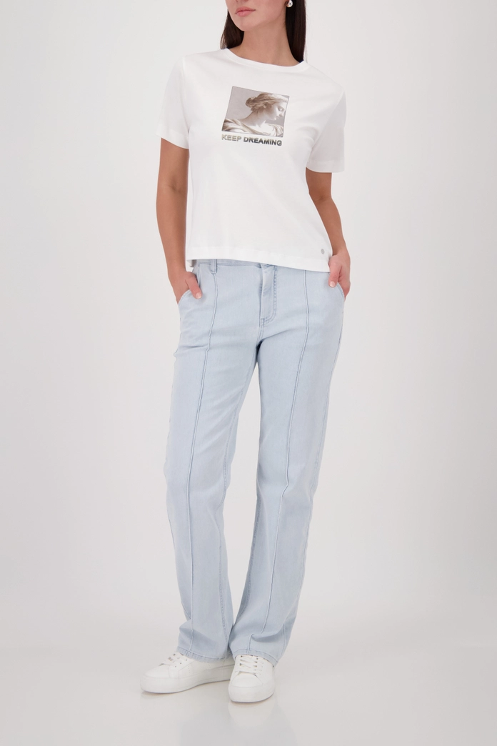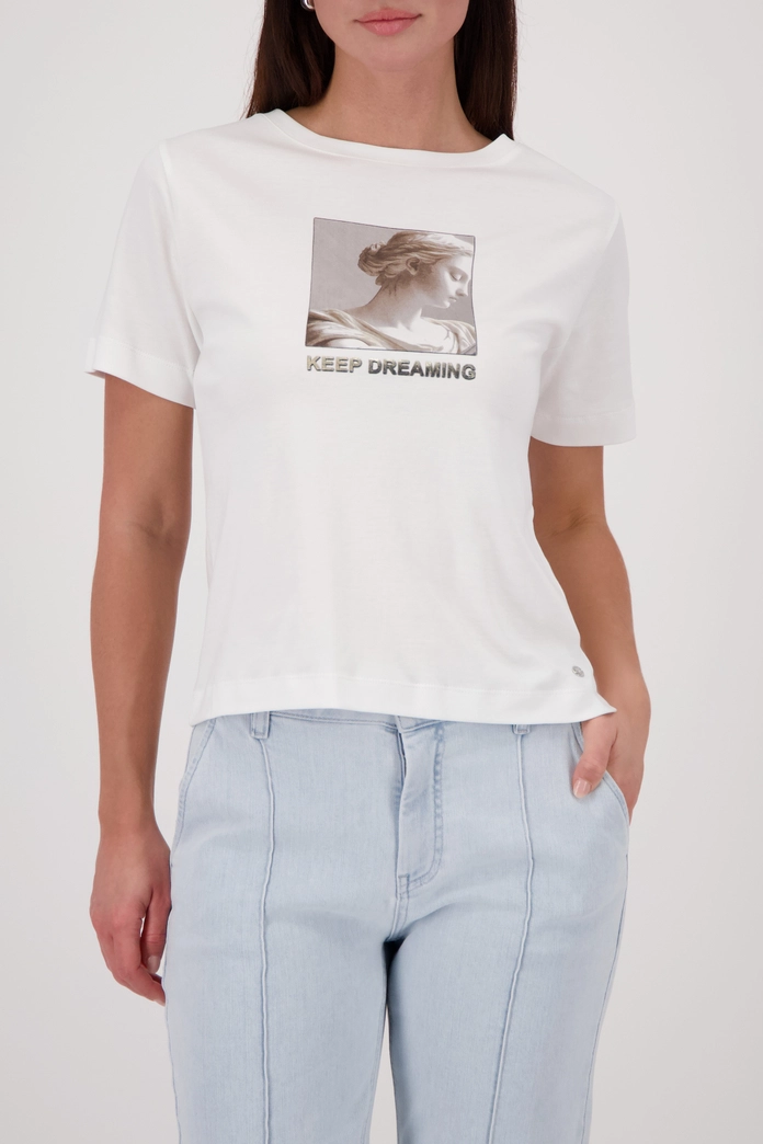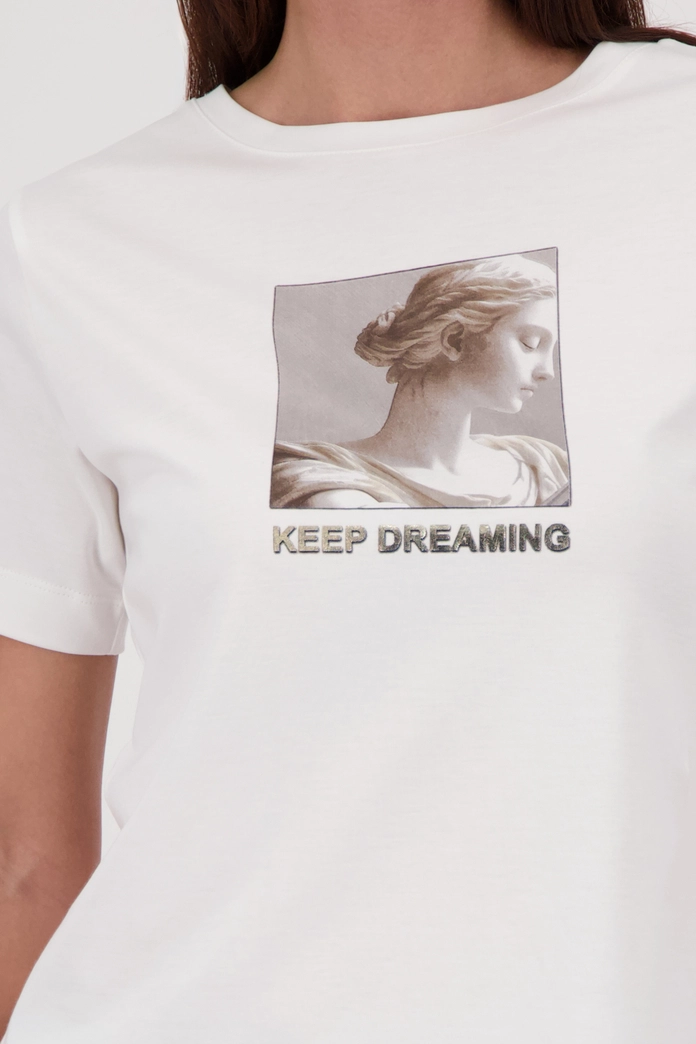 Стильная футболка из 100% хлопка с мягкой текстурой, круглым вырезом и вдохновляющим принтом со статуей и надписью «Продолжай мечтать».
