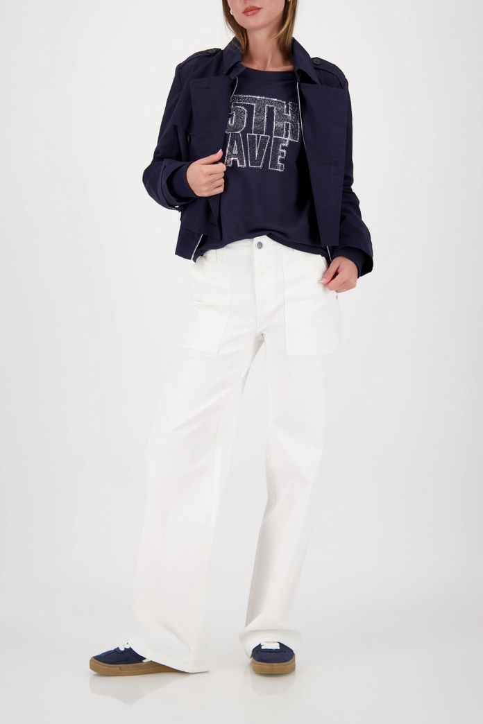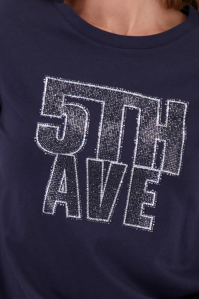 Элегантная рубашка с длинным рукавом из высококачественного хлопка с добавлением модала и сверкающей надписью «5th Ave» из страз.