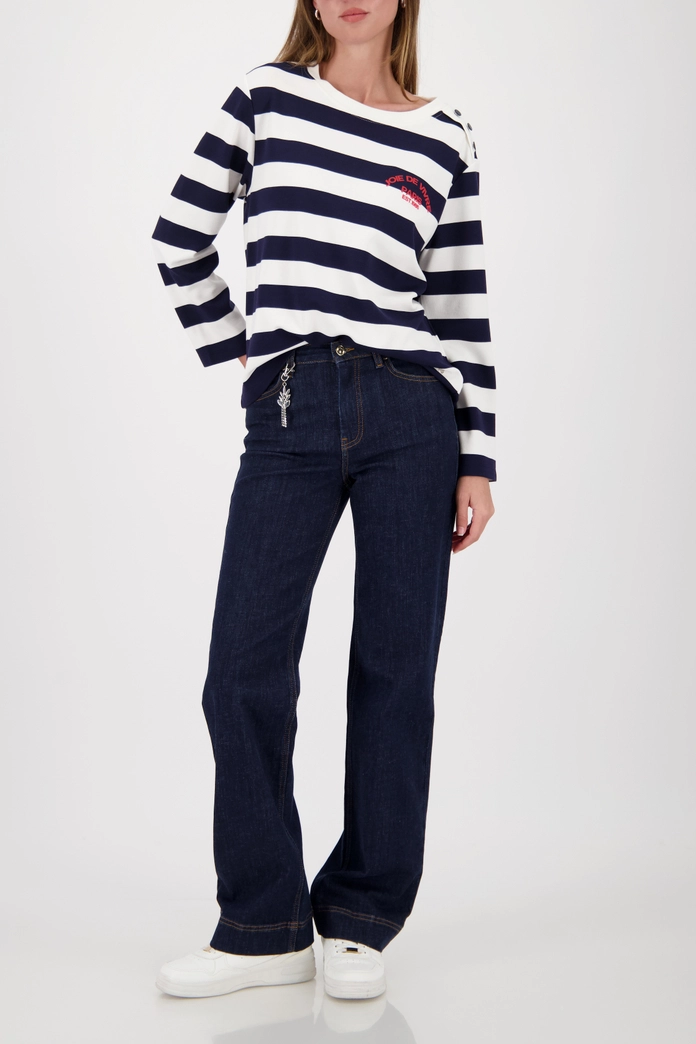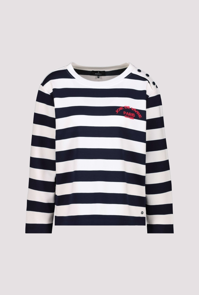 Толстовка Monari – ваш стильный спутник этой весны! Удобный прямой силуэт, легкий материал и модные морские полосы делают её идеальной вещью базового гардероба. Производится в Германии по стандартам качества бренда Monari. Подходит для российских размеров от 36 до 52 RU. Новинка сезона – спешите приобрести!