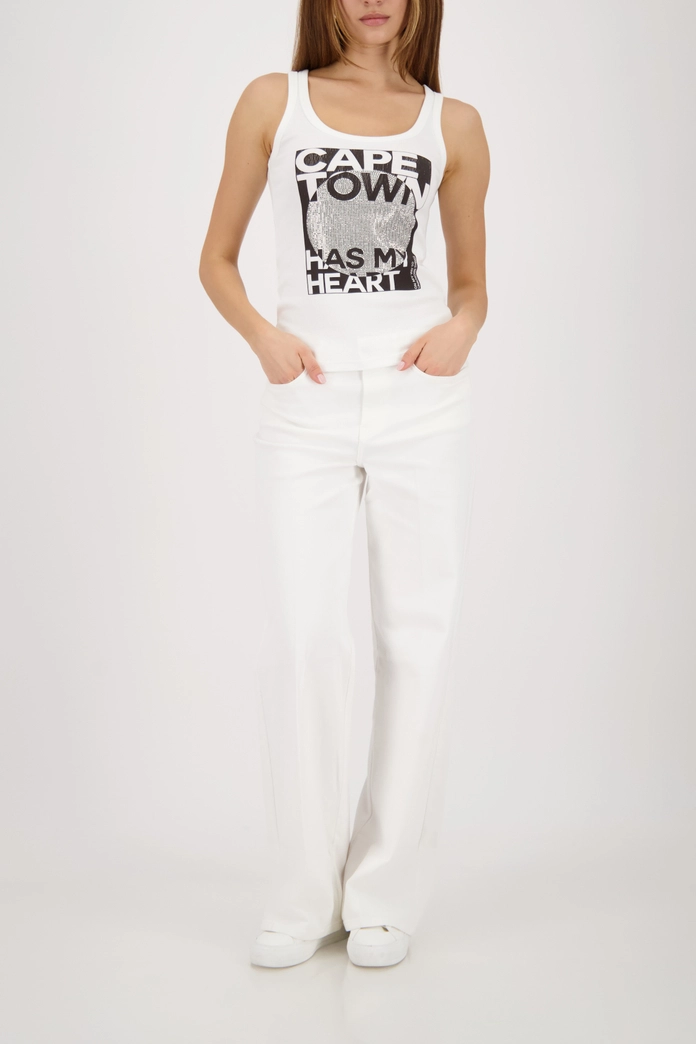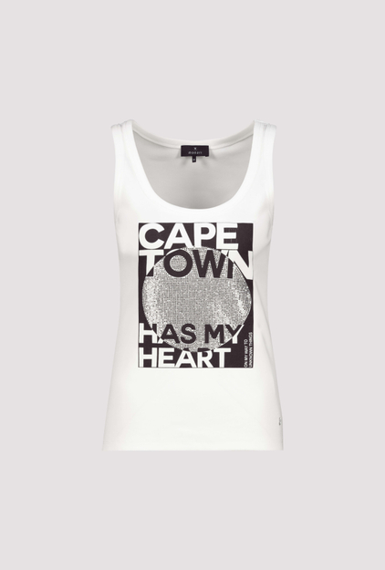 Этот стильный топ из высококачественного хлопка украшен стразами и поэтичной надписью «Кейптаун — сердце моего города».