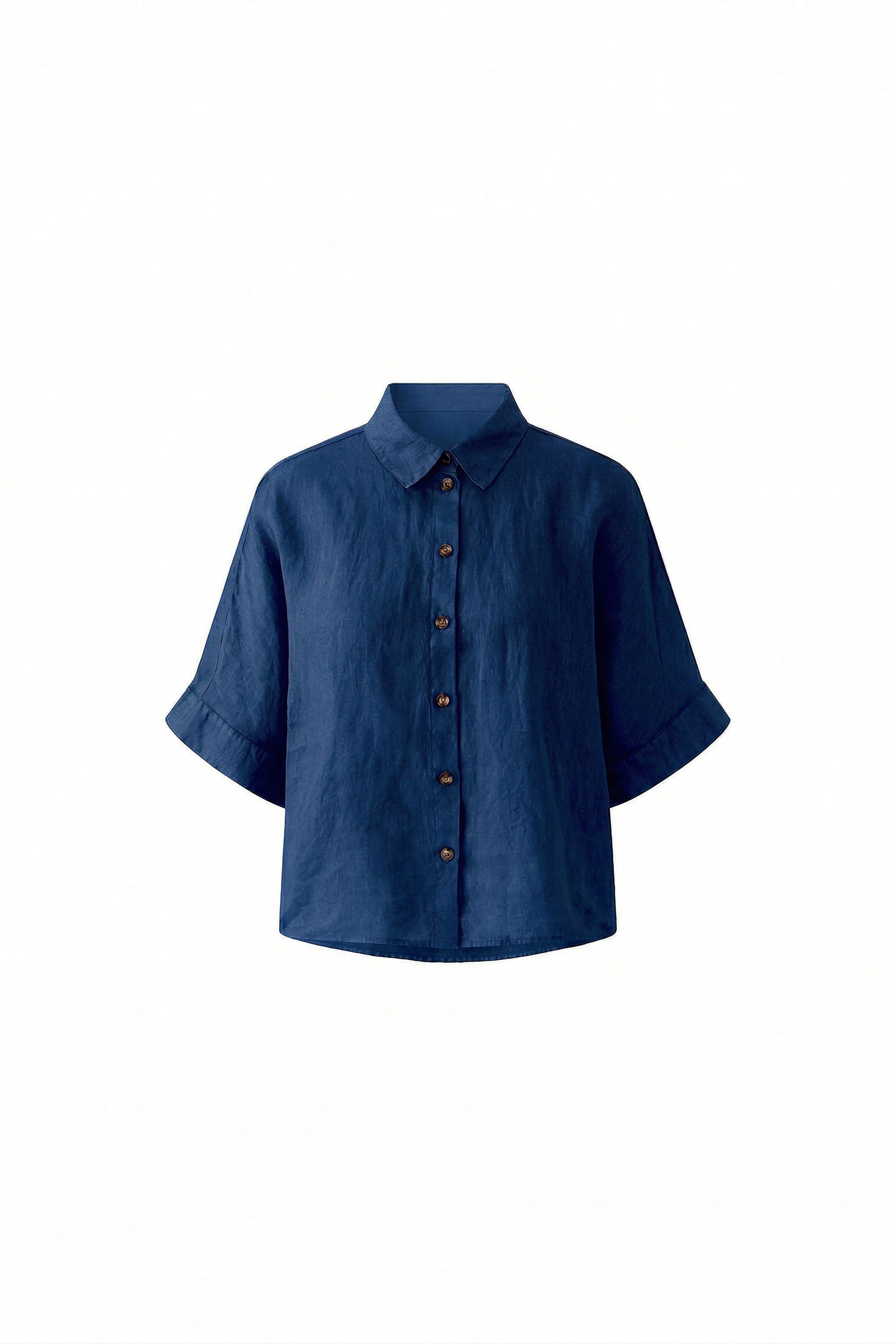 Льняная блузка – очень повседневный фасон с едва заметными обратными складками на кокетке сзади.