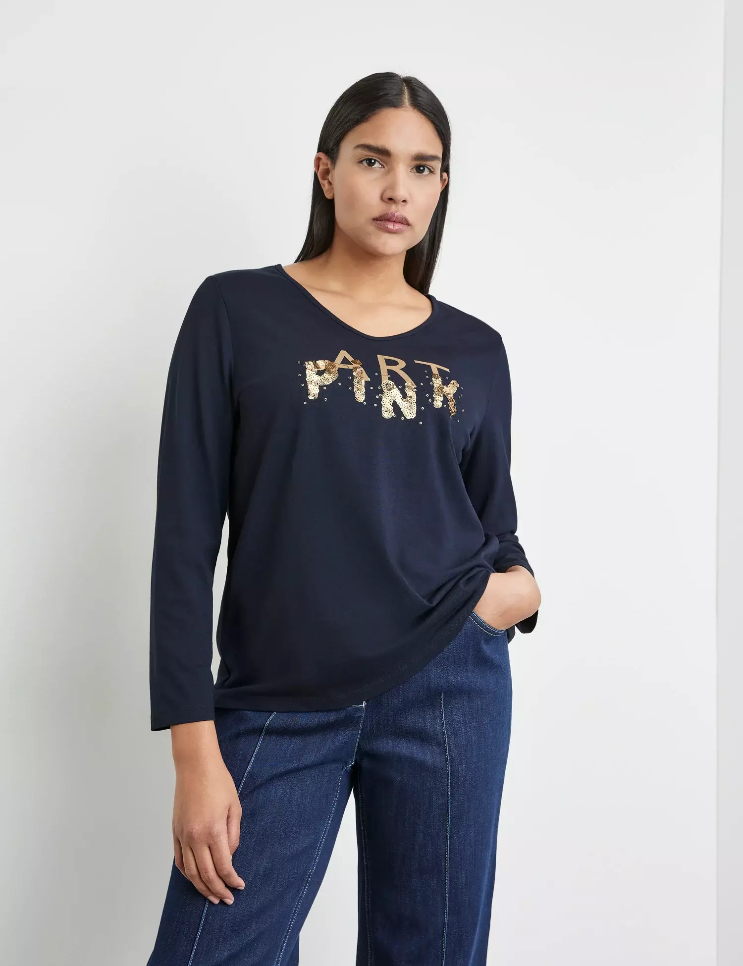 Сияй ярко! Эта рубашка с длинными рукавами привлекает внимание благодаря текстовому принту и украшению пайетками, а сверхмягкий трикотаж балует вашу кожу. Незаменимая вещь для тех, кто ищет что-то особенное!