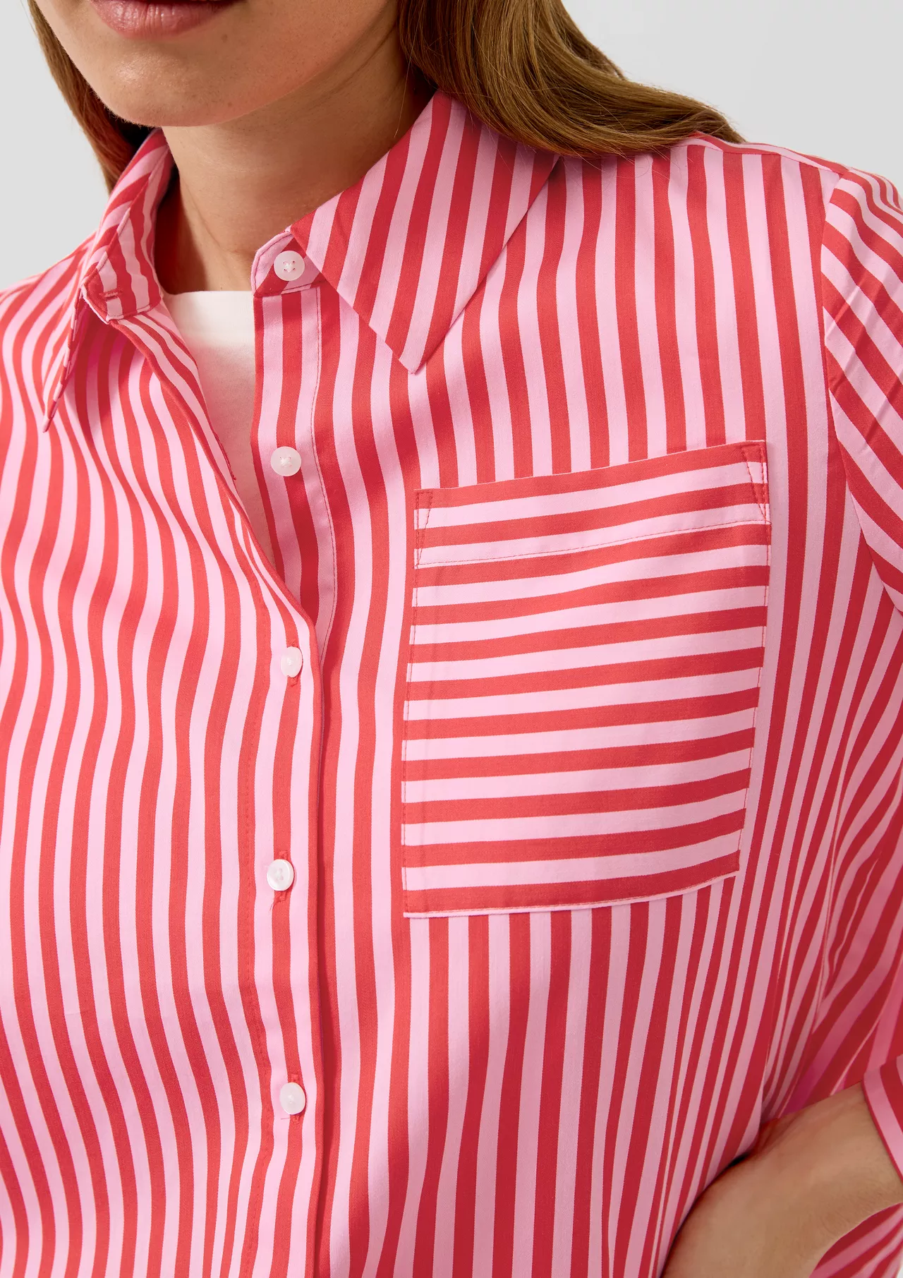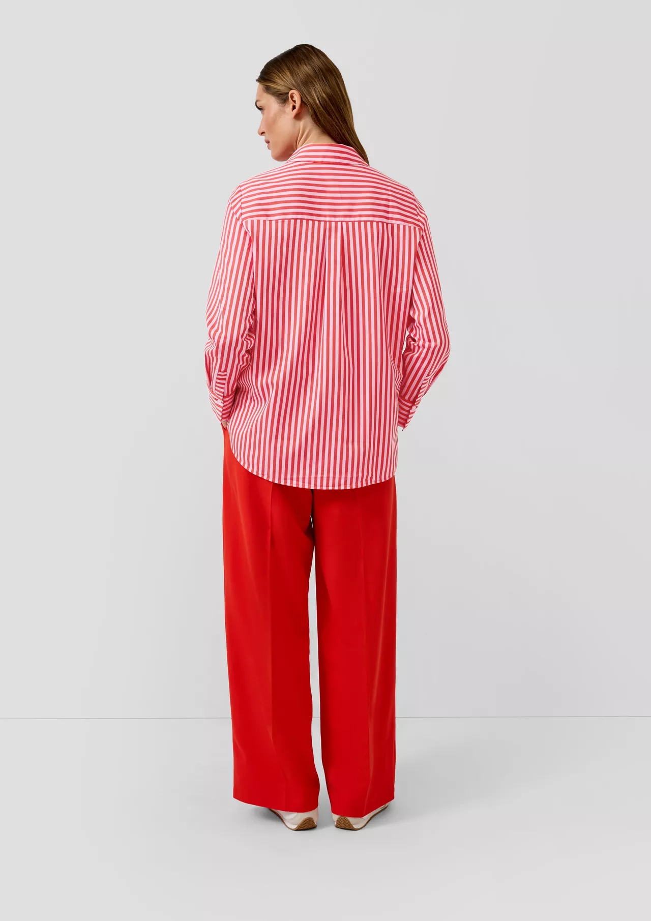 Классическая элегантность сочетается с непринужденной простотой: эта блузка из тонкого поплина впечатляет своим полосатым узором и современным свободным кроем. Воротник и манжеты придают ей вневременной шарм, а закругленный низ обеспечивает струящийся силуэт. Будь то деловой образ или повседневная одежда, она подчеркнет вашу индивидуальность и уверенность в себе.