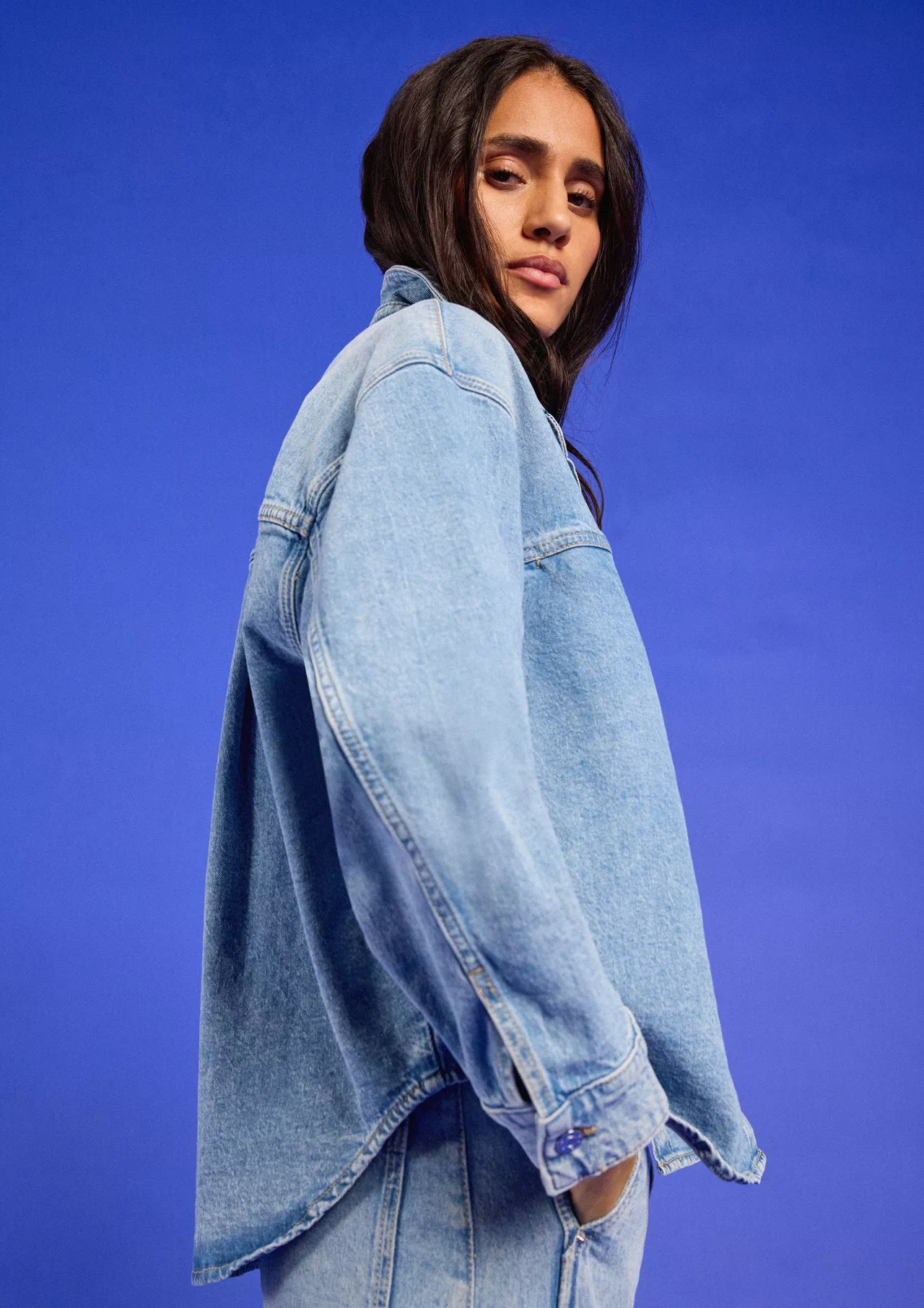 Эта объемная джинсовая куртка станет вашим незаменимым спутником в дни отдыха! Повседневный воротник рубашечного типа и практичный нагрудный карман делают ее универсальной и любимой вещью. Будь то бранч с друзьями или прогулка по городу, свободный объемный крой со спущенными плечами обеспечит стильный и непринужденный образ. Просто наденьте ее и вперед!