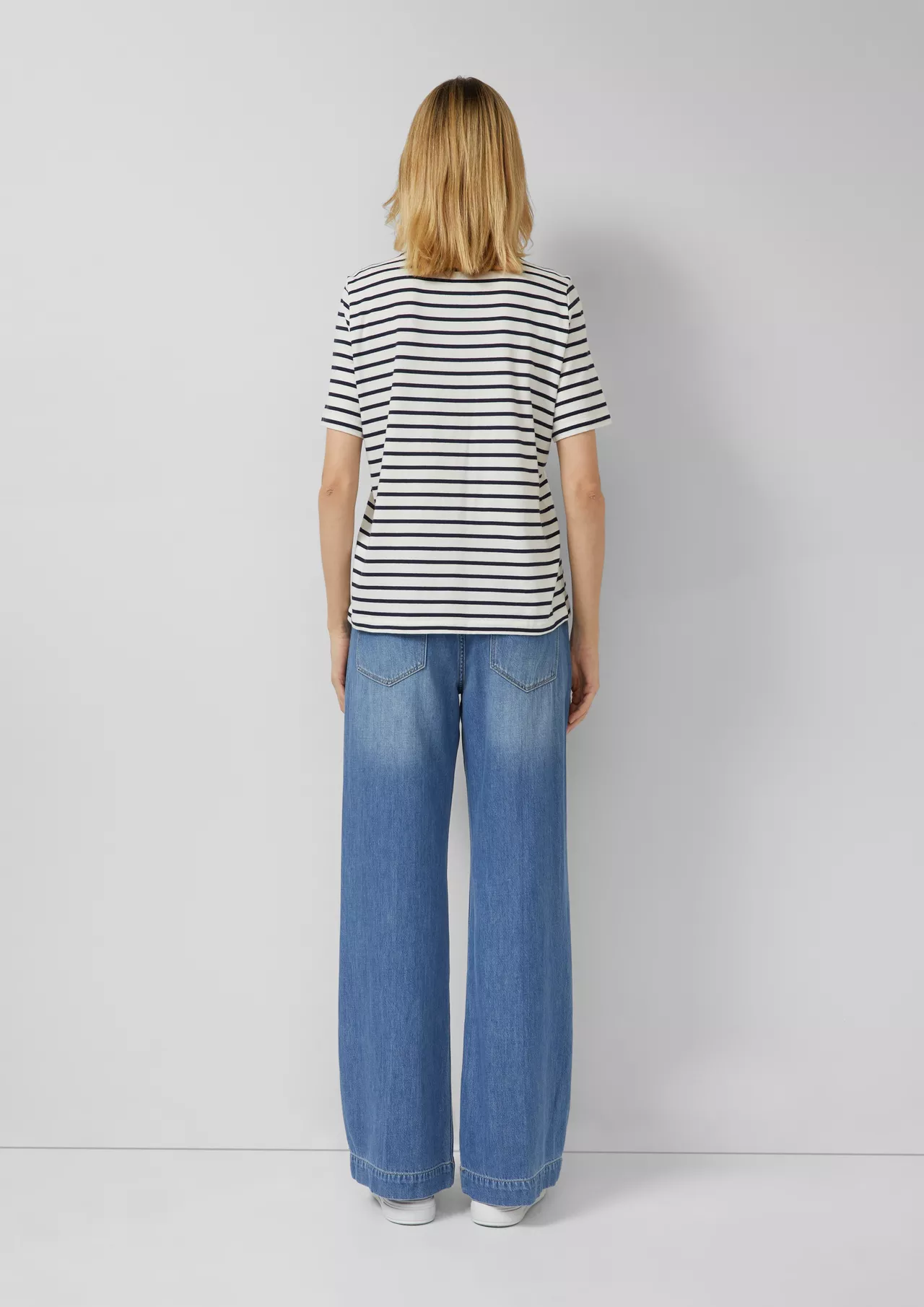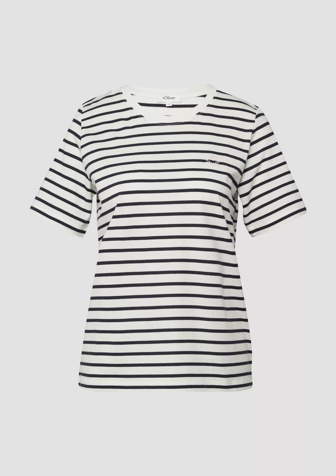 Ваша новая любимая вещь для расслабленных дней! Эта полосатая трикотажная футболка с очаровательной вышивкой в ​​виде сердечек привнесет в вашу повседневную жизнь непринужденный и приятный стиль. Мягкий трикотаж и стандартный крой обеспечивают комфорт – будь то встреча с друзьями, шопинг или отдых дома. Легко сочетается с другой одеждой и универсальна!