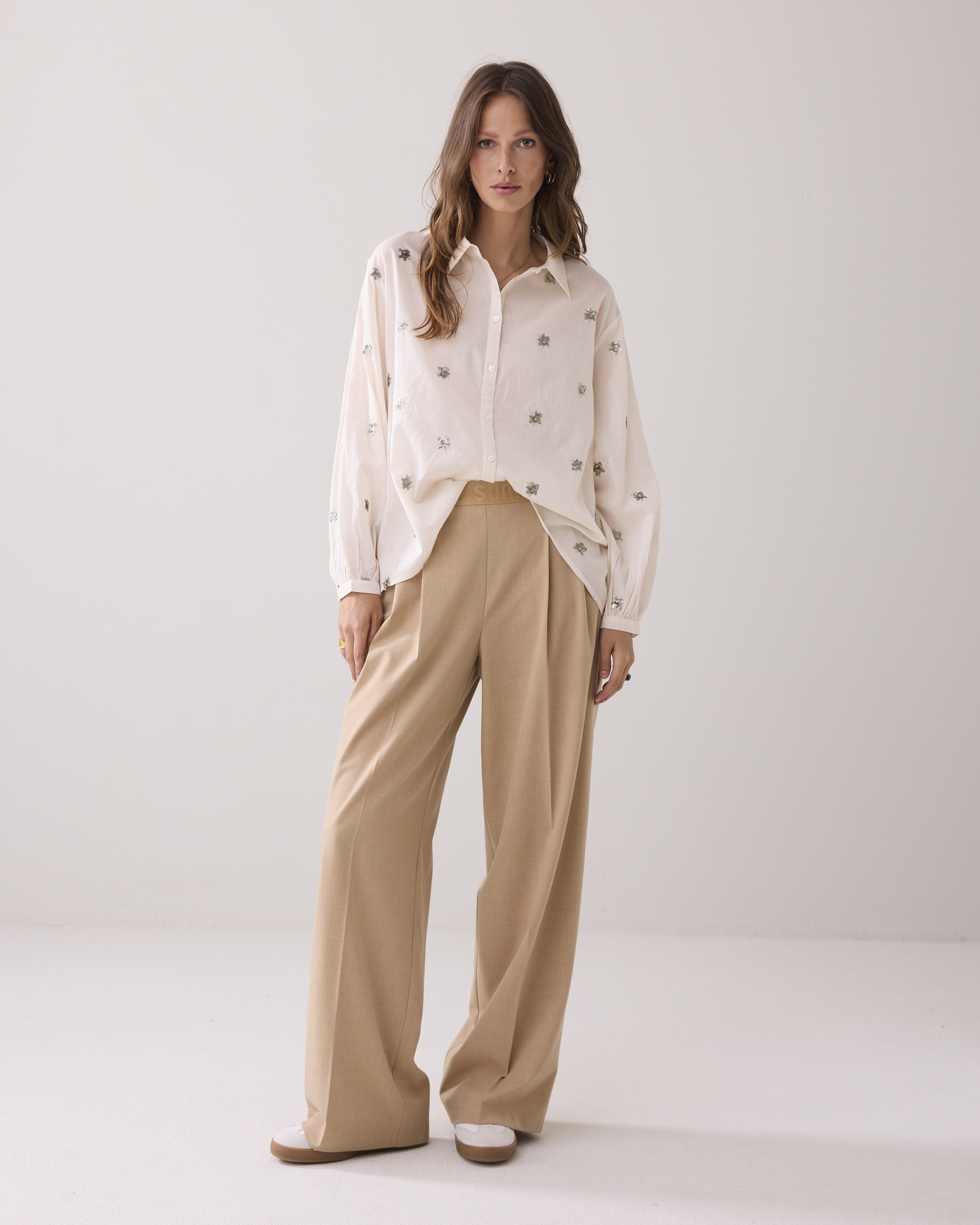 Новая блузка от бренда SUMMUM — стильный акцент вашего образа! Кремый цвет подходит к любому гардеробу, а длинные рукава и прямой силуэт подчеркивают элегантность. Праздничный блеск пайеток добавит уверенности и сделает вас звездой вечера. Изящное сочетание голландского качества и утонченного дизайна – выбирайте свой размер уже сегодня!